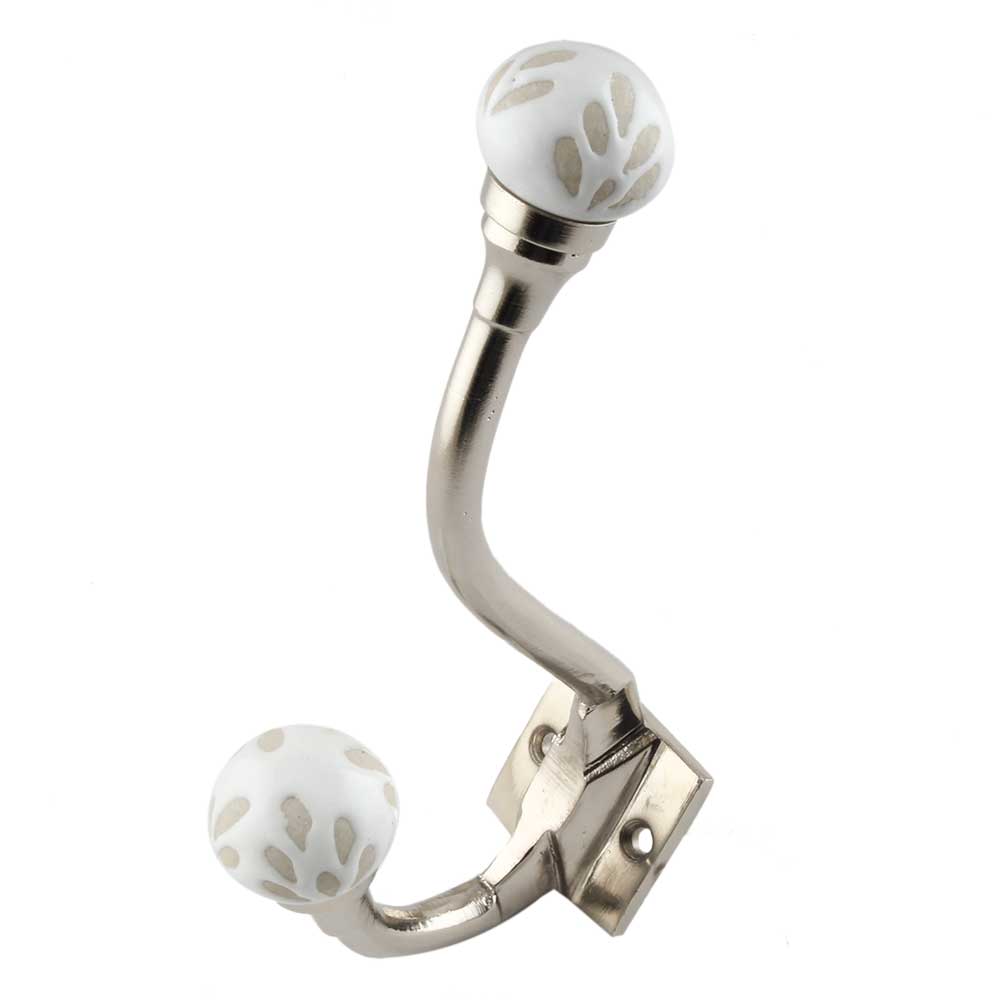 White Etched Ceramic Iron Hooks. When Put on Wall or Cabinet It Gives A Sturdy Look. This Hook is Strong Enough to Hold Your Cloths, Keys, Tea Cups, Coffee Mugs, Hand Towels etc.