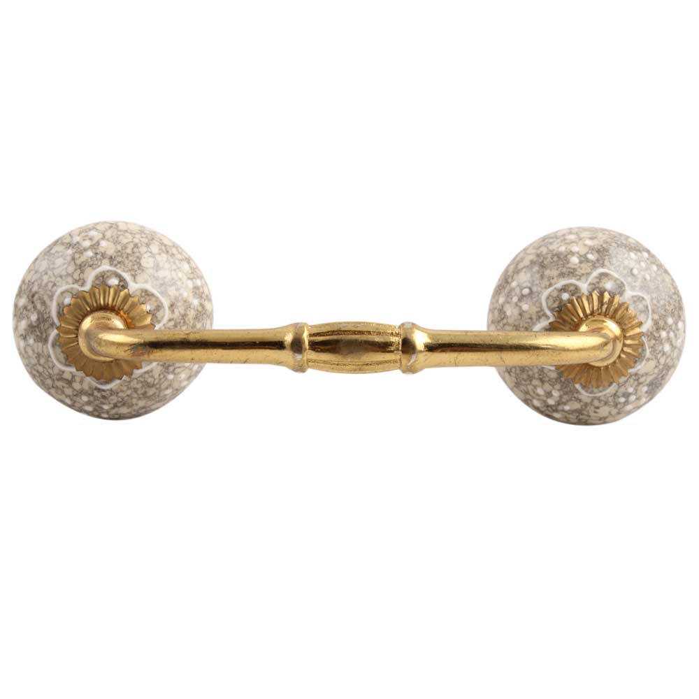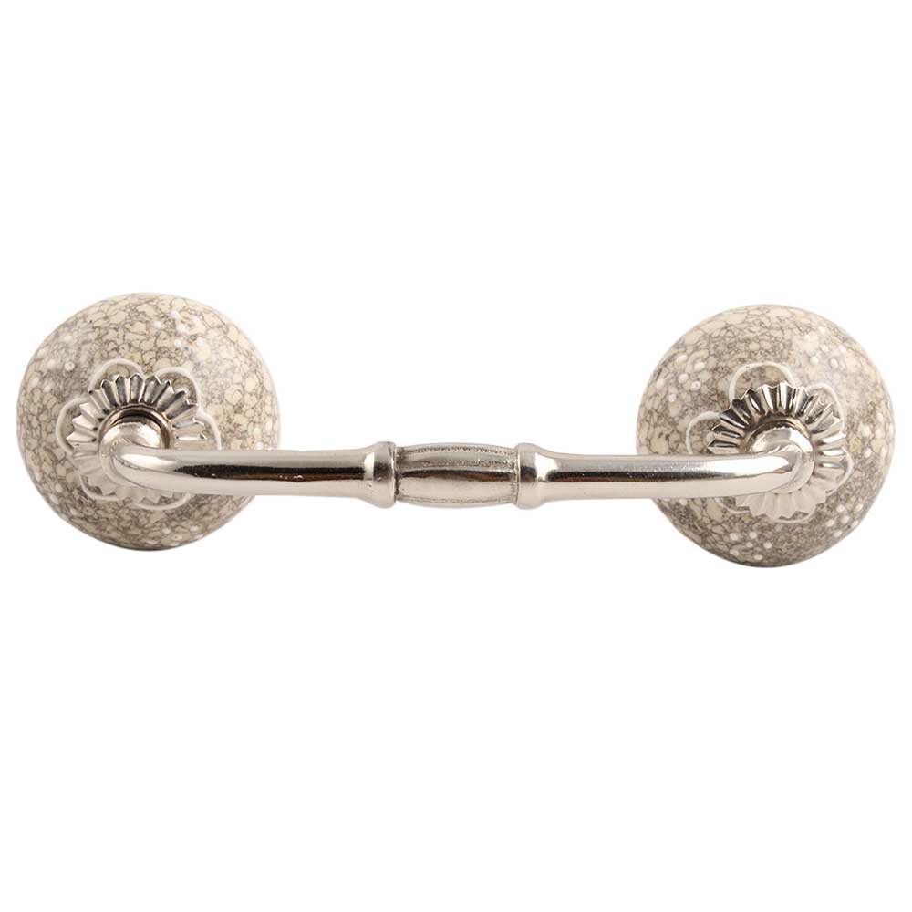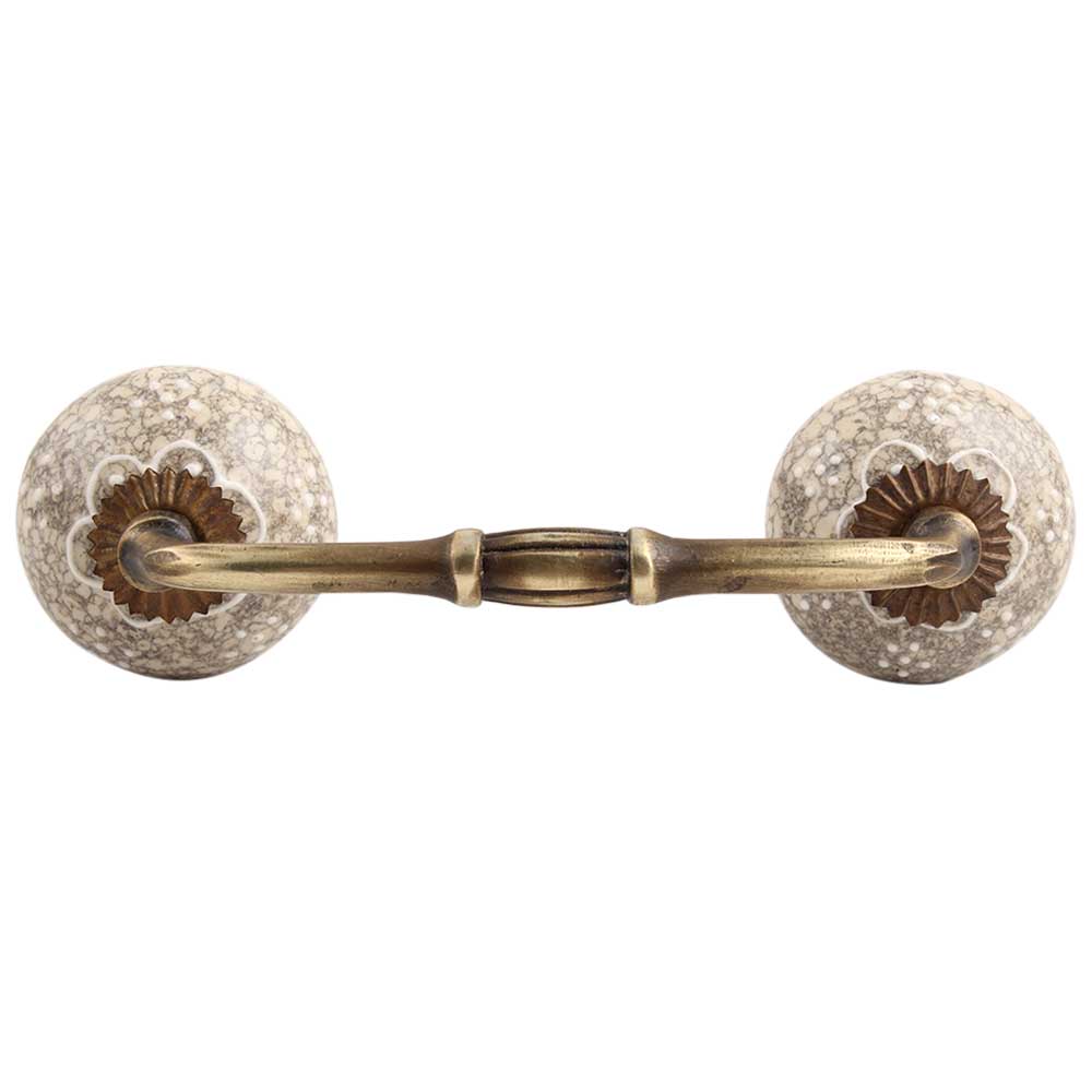 White Flower Crackle Ceramic Bridge Handle. Ideal for Drawer, Dresser, Cabinet, Wardrobe, Cupboard and Almirah etc.