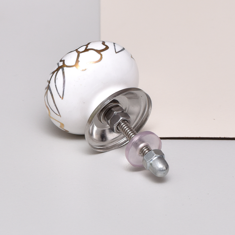 Elevate your furniture with the White Gold Fine Leaf Round Ceramic Cabinet Knob. This beautiful knob features a white ceramic base embellished with delicate gold leaf accents, striking a perfect balance between timeless elegance and contemporary style. It's an excellent choice for enhancing the appearance of cabinets, drawers, and dressers, making a bold statement in any space.