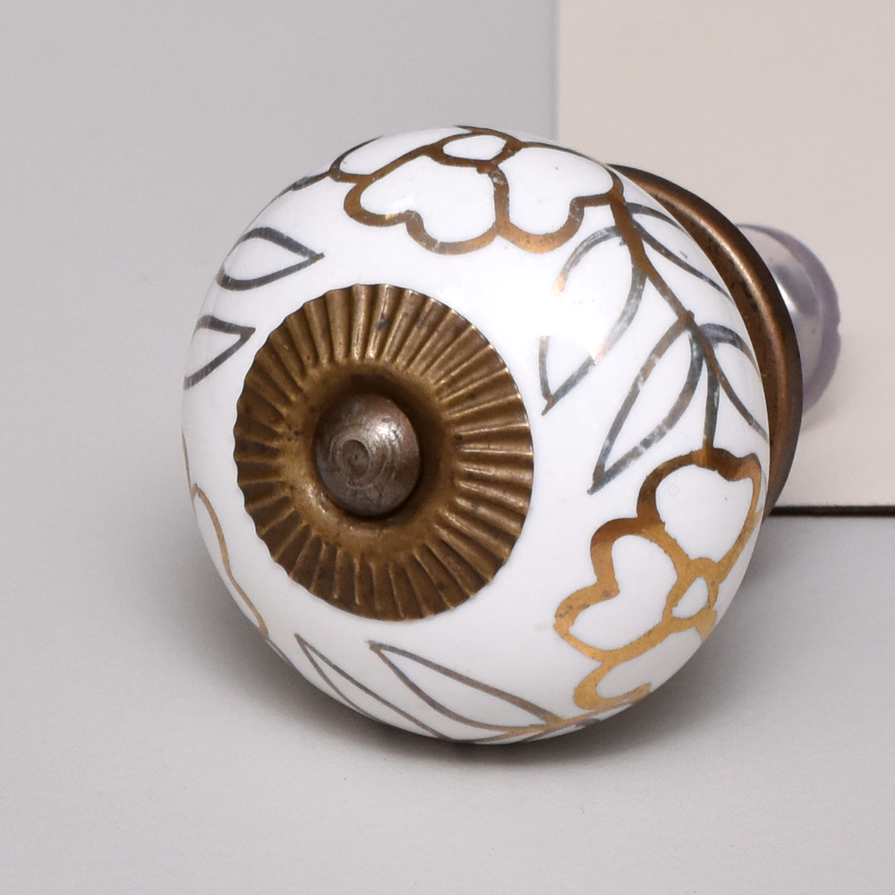 The combination of white and gold creates a timeless design that will complement your furniture for years to come. The fine gold leaf detailing ensures that this knob remains a luxurious feature, adding sophistication and charm to any room in your home.
