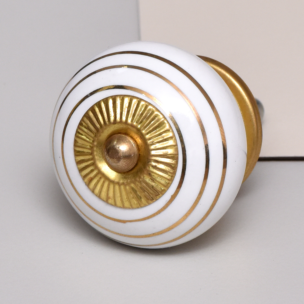 The White Golden Line Knob merges a pristine white ceramic base with intricately crafted golden lines, resulting in a sleek and contemporary look. This sophisticated design is perfect for infusing a modern and luxurious flair into various home decor styles.