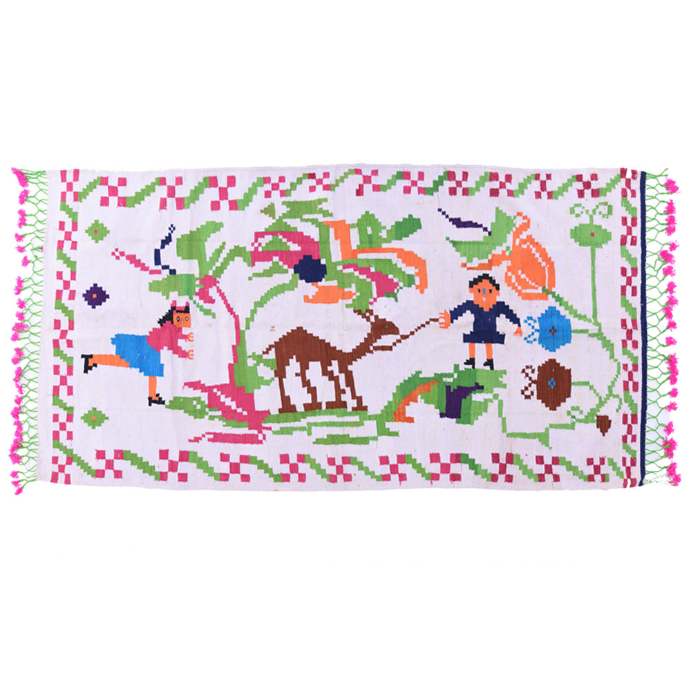 White Kids Playing In The Garden Handmade Durry.