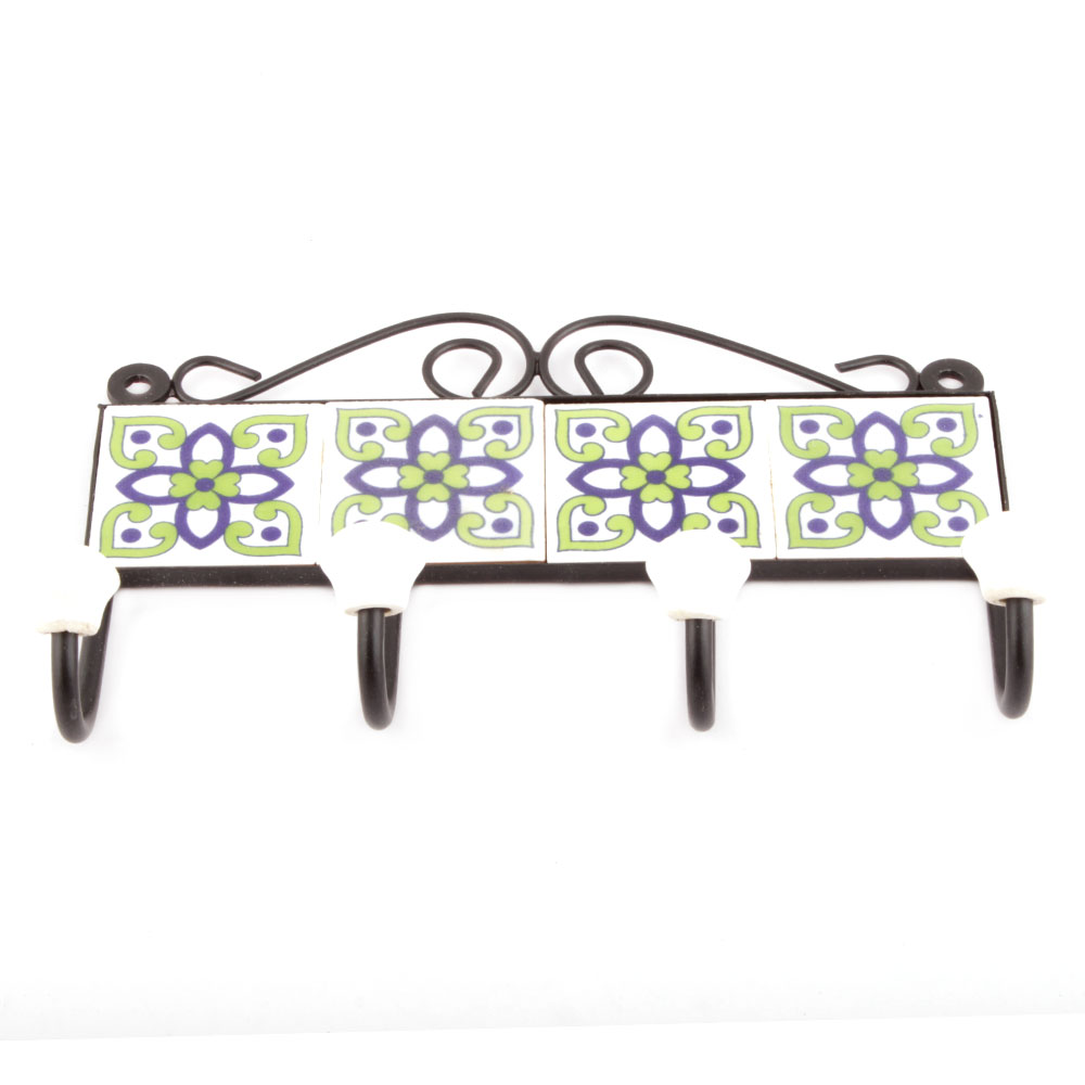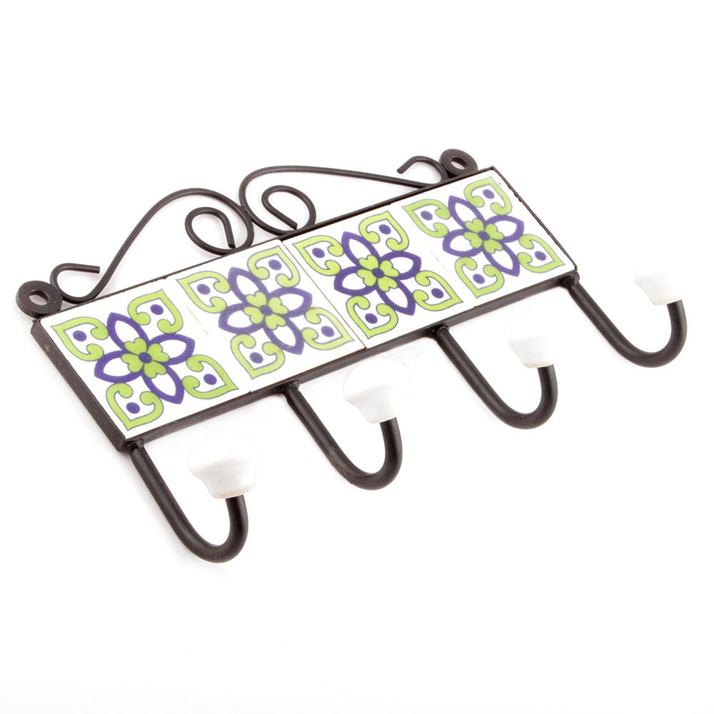 White Navy Blue Floral Ceramic Tiles Hooks Online. When Put on Wall or Cabinet it is an Art in itself. The Metal Part of this Hook is Black Powder Coated.