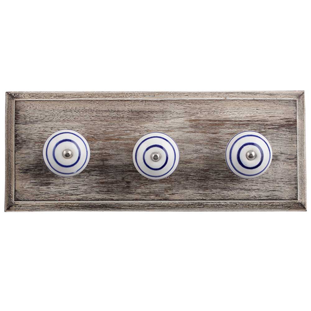 White Navy Blue Wooden Hooks. A Perfect Complement to the Soft Tone of the Wood are these White Traditional Hat Coat Hook Made of Genuine Porcelain and Brass. It can be use to Hang Jewellery, Leashes, Towels, Scarves, Light Weight Sweaters, Caps Etc.