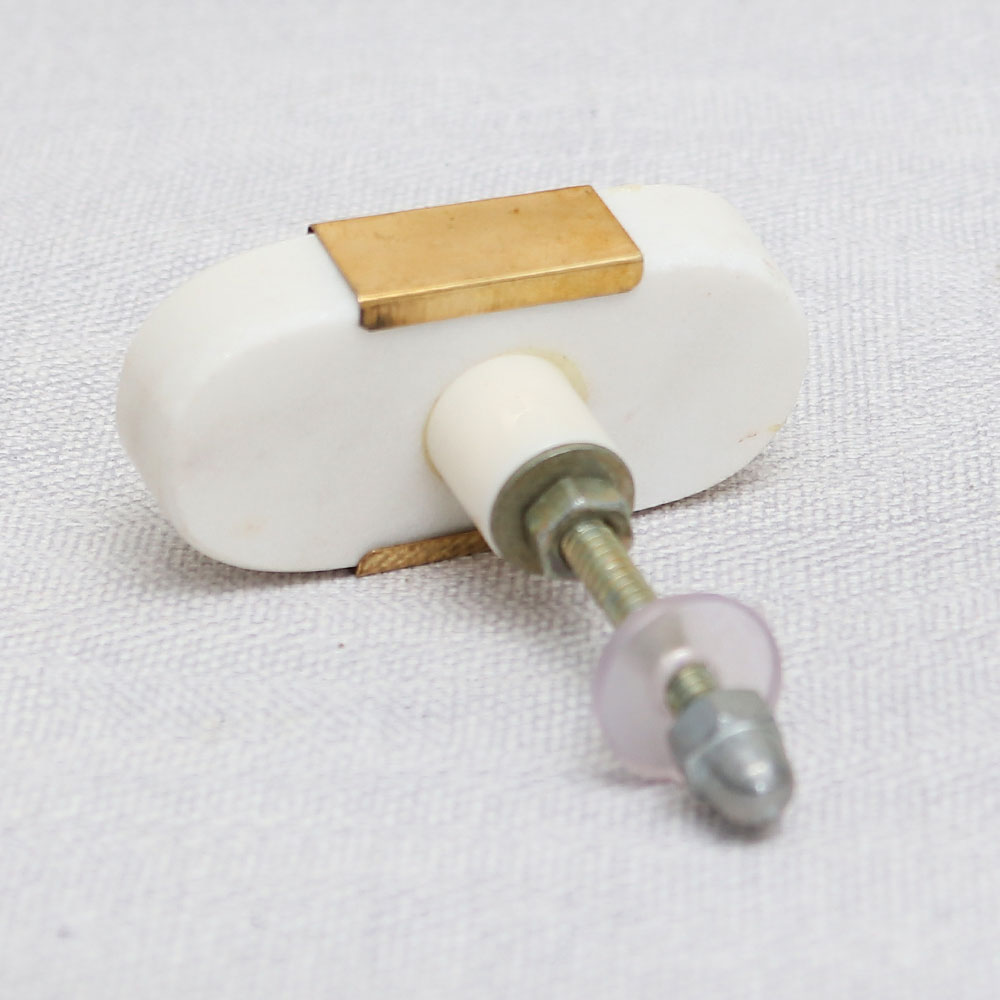 The White Oval Golden Stone Dresser Knob presents a refined and sophisticated appearance, harmonizing the natural allure of white stone with the elegance of gold accents. Its oval shape and delicate golden detailing make it a perfect addition to any dresser, cabinet, or drawer. Whether your style leans modern or traditional, these knobs enhance the aesthetic of any room with their timeless appeal.
