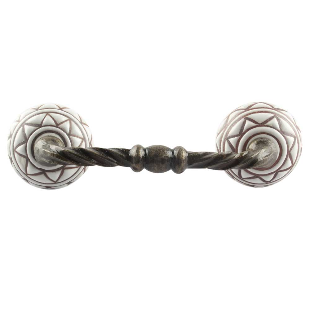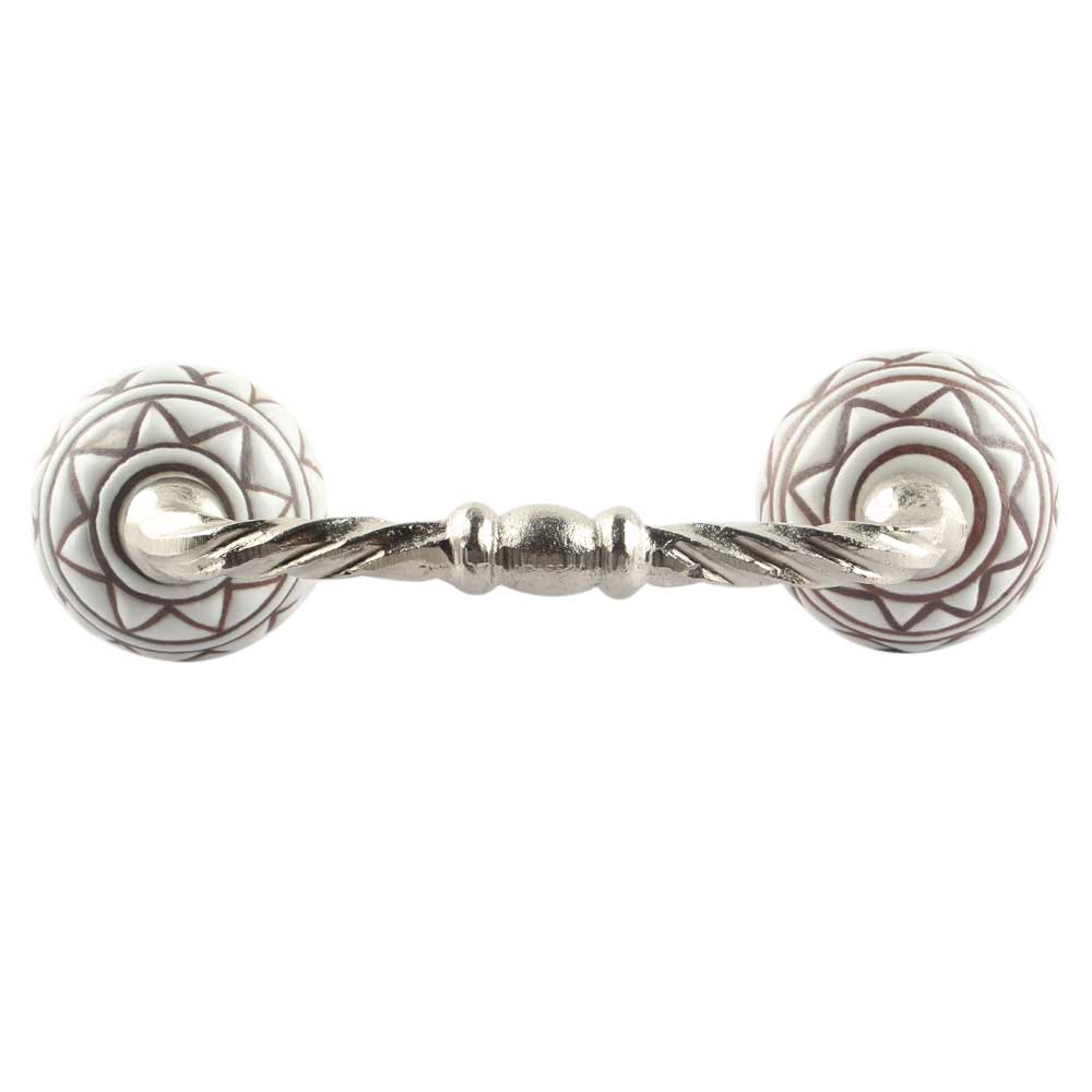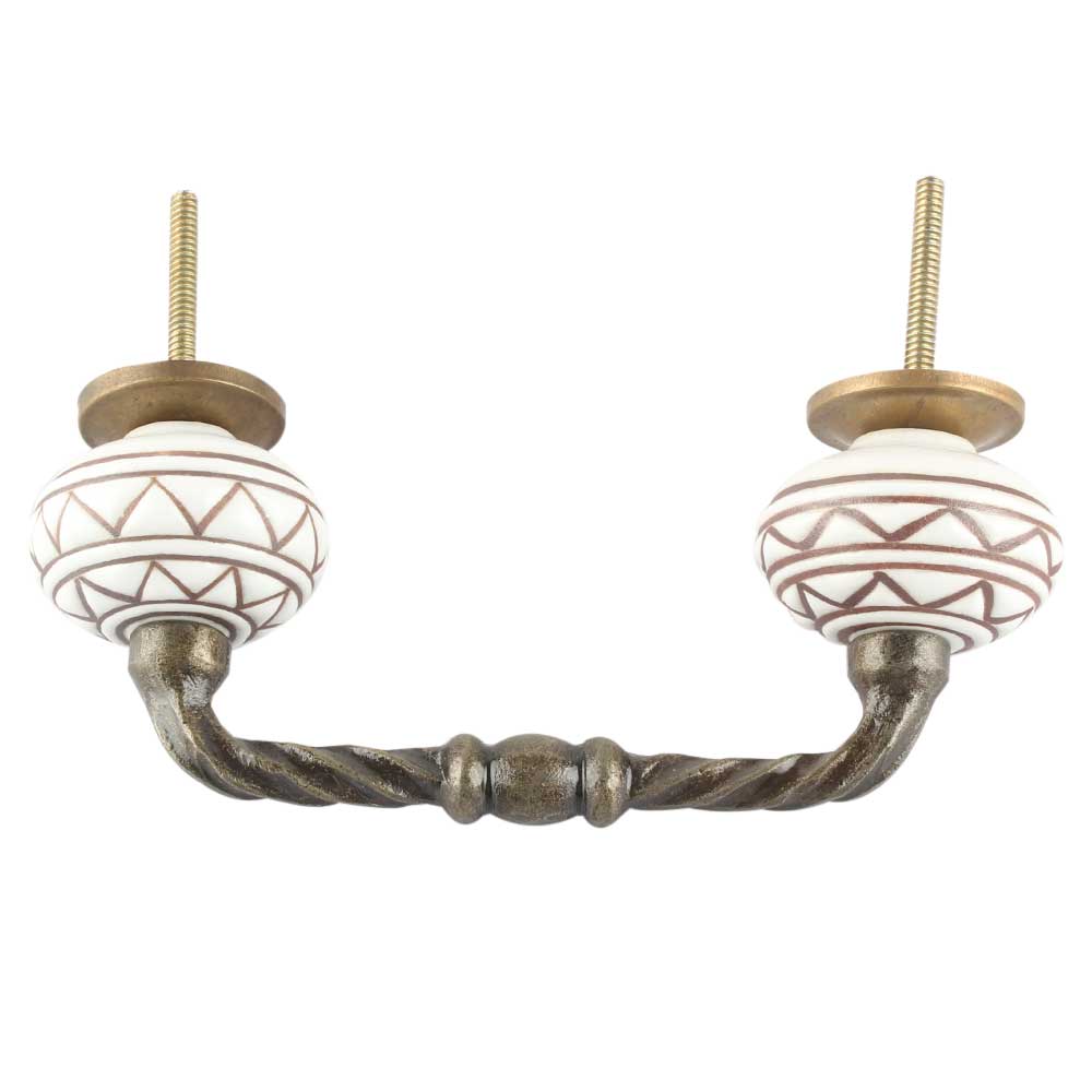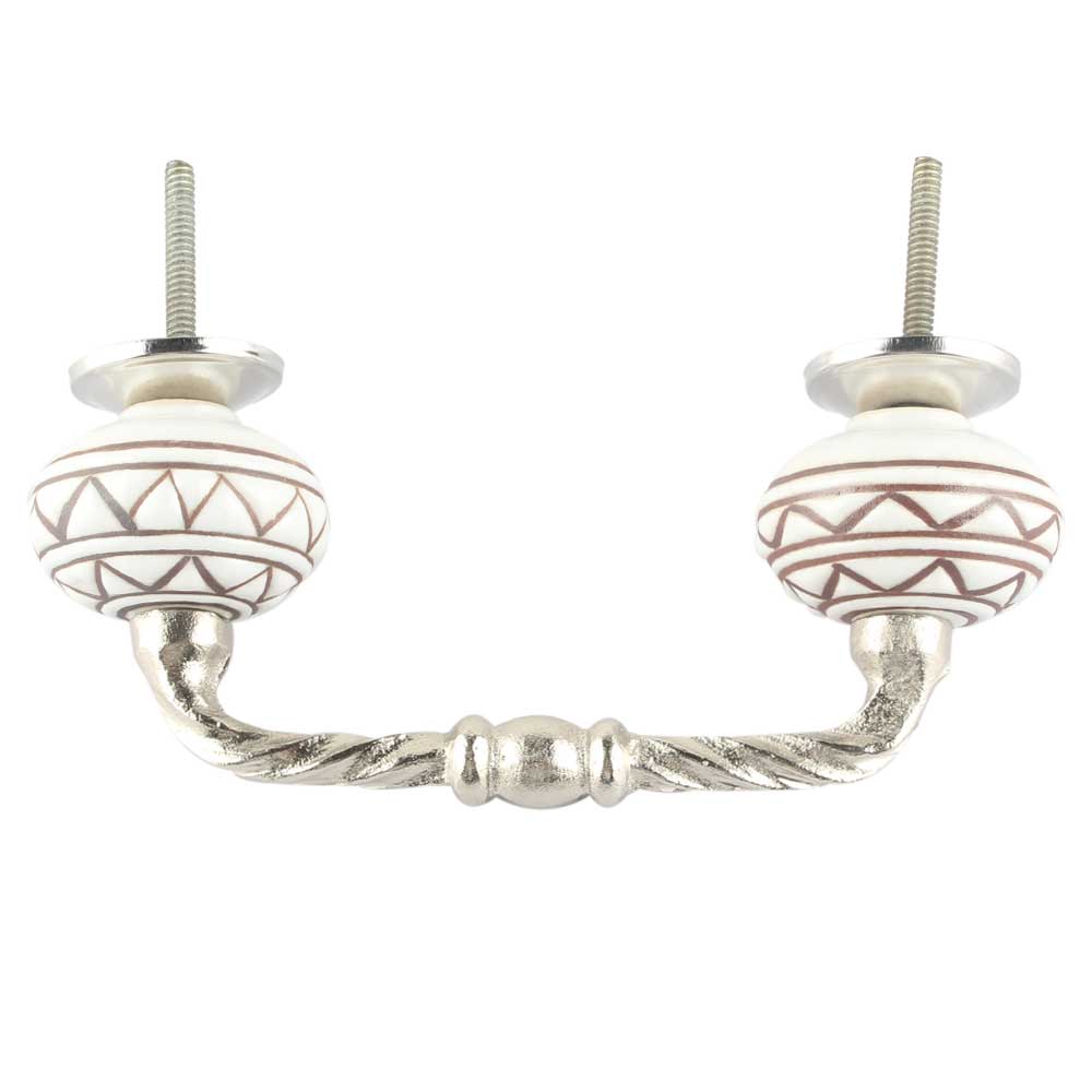 White Pattern Etched Ceramic Cut Bridge Handle Online. Ideal for Drawer, Dresser, Cabinet, Wardrobe, Cupboard and Almirah etc.