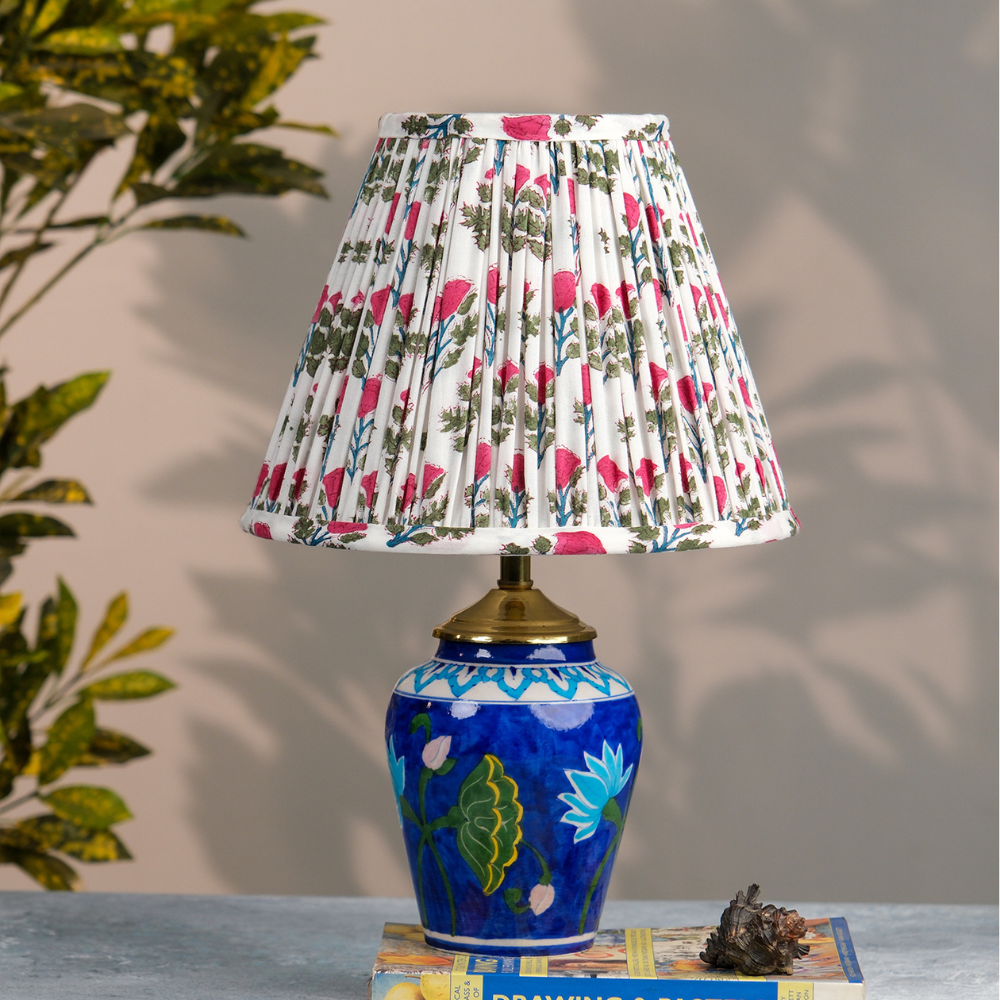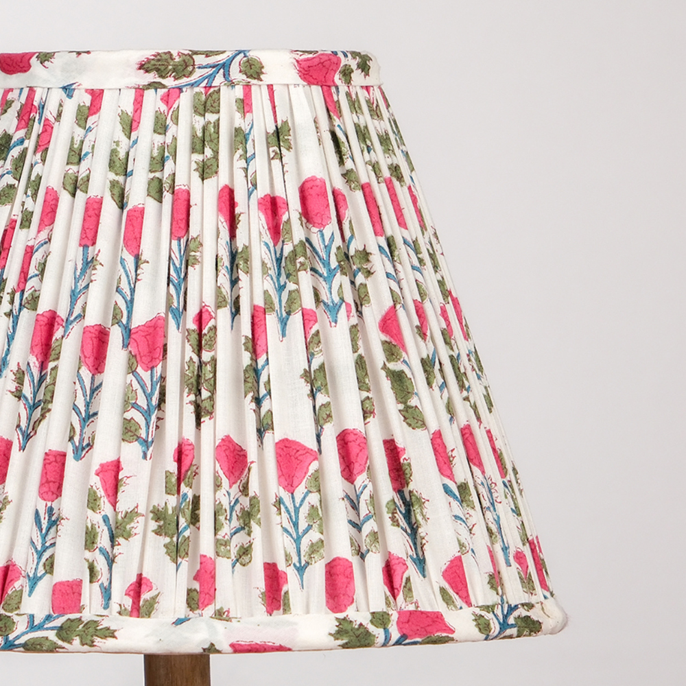Bring a touch of ornamental vine of bougainvillea with soft pink floral pattern, hand block printed on cotton white fabric. Available in 3 sizes.