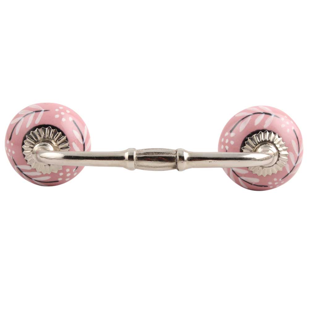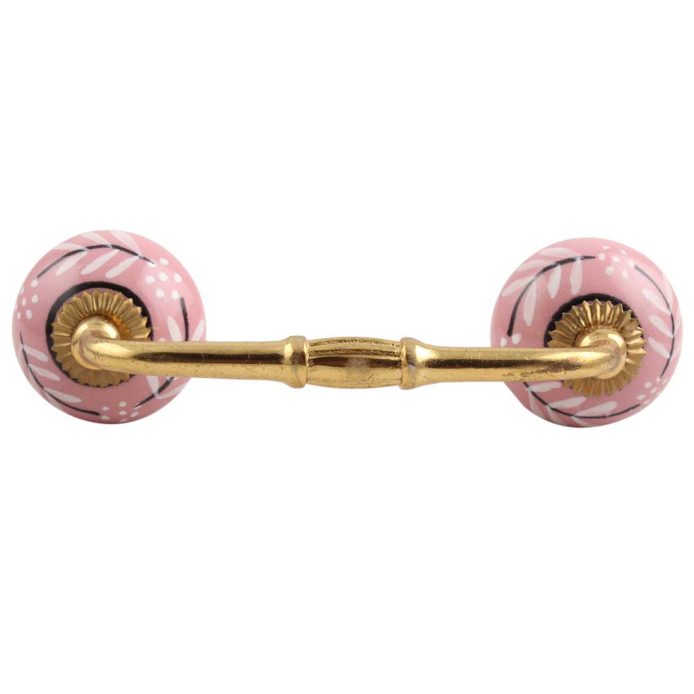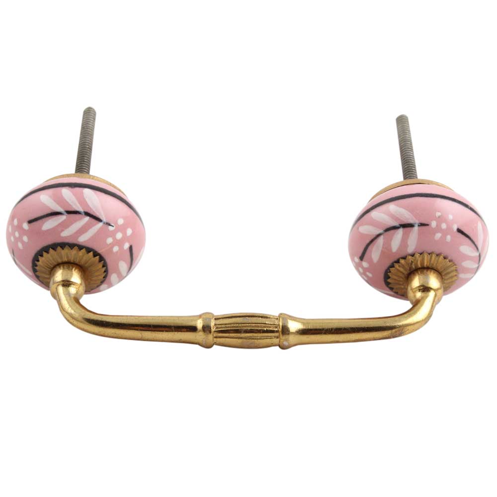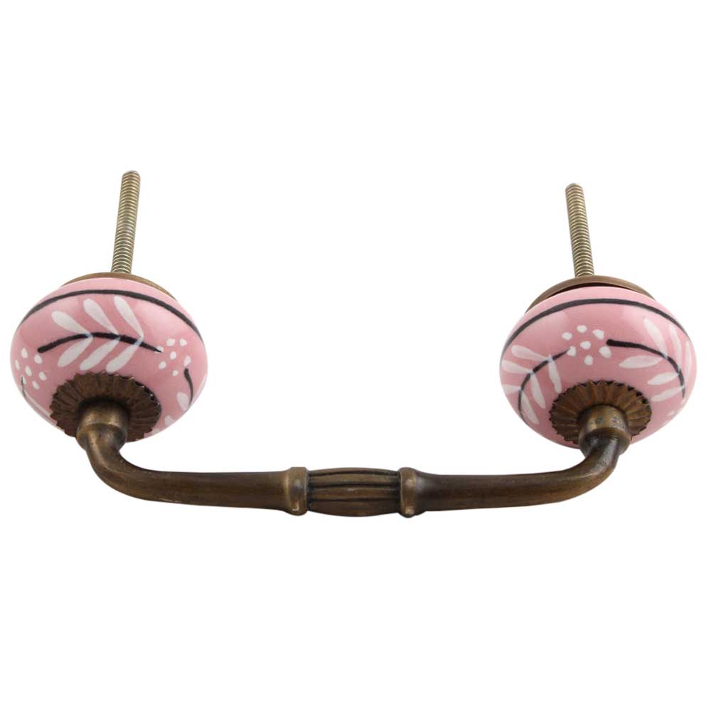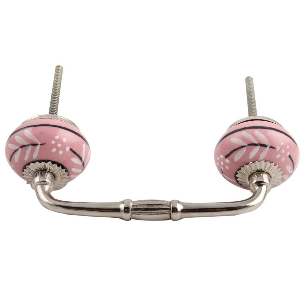White Pink Leaf Ceramic Bridge Handle. Ideal for Drawer, Dresser, Cabinet, Wardrobe, Cupboard and Almirah.
