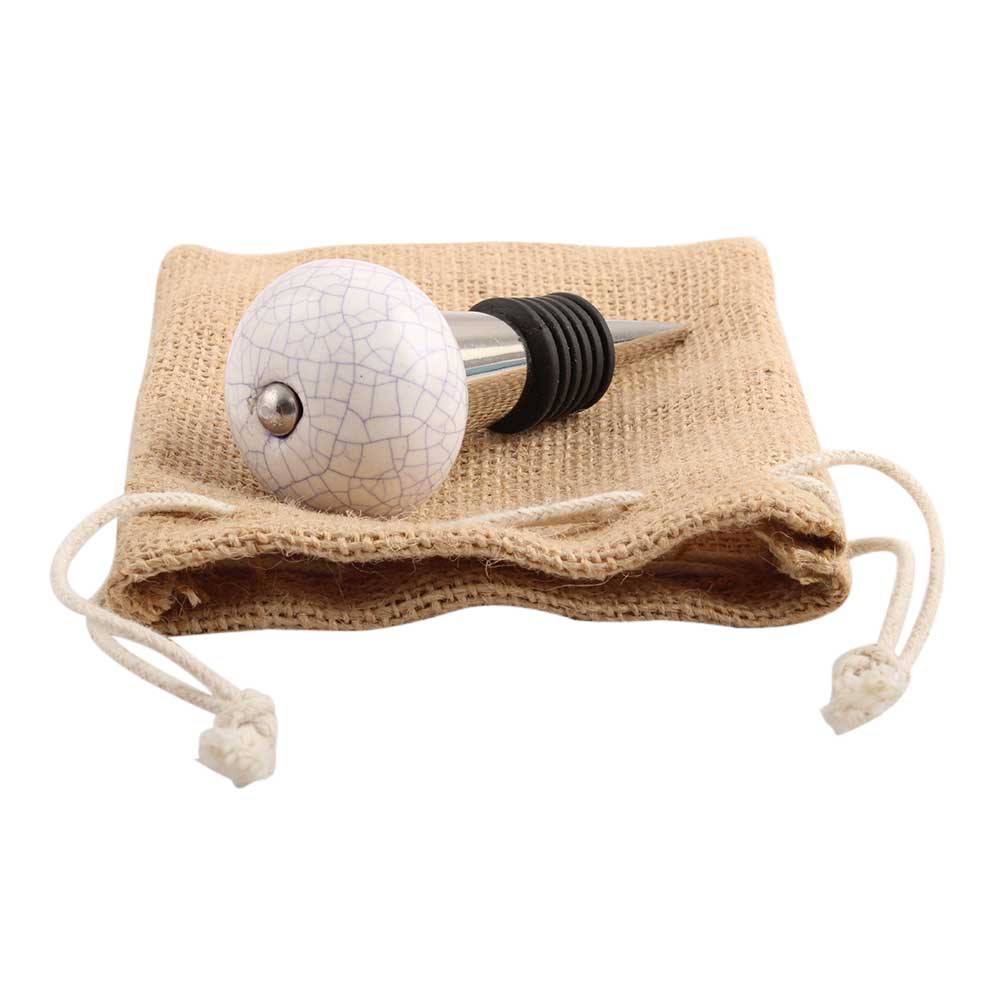 White Purple Crackle Ceramic Wine Stopper.zinc alloy wine bottle stopper with attractive Jute Bag Packaging.