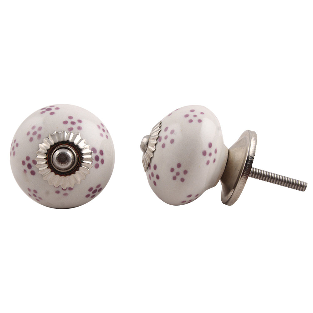 White Purple Dotted Floral knob, kitchen drawers, dining room, bed room, chest drawers, dressing tables, almirah
