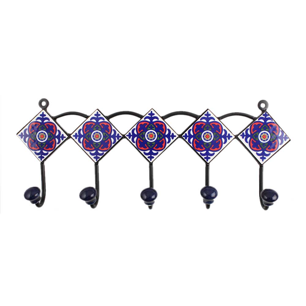 White Red Floral Tiles Hook. When Put on Wall or Cabinet It is An Art in Itself. the Metal Part of This Hook is Black Powder Coated.