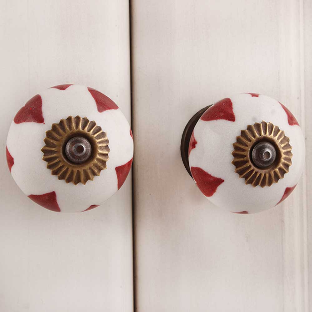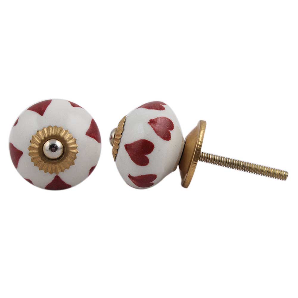 White Red Hearts Ceramic Knob. Ideal for kitchen cabinets, kitchen drawers, dining room, bed room, chest drawers, dressing tables, almirah