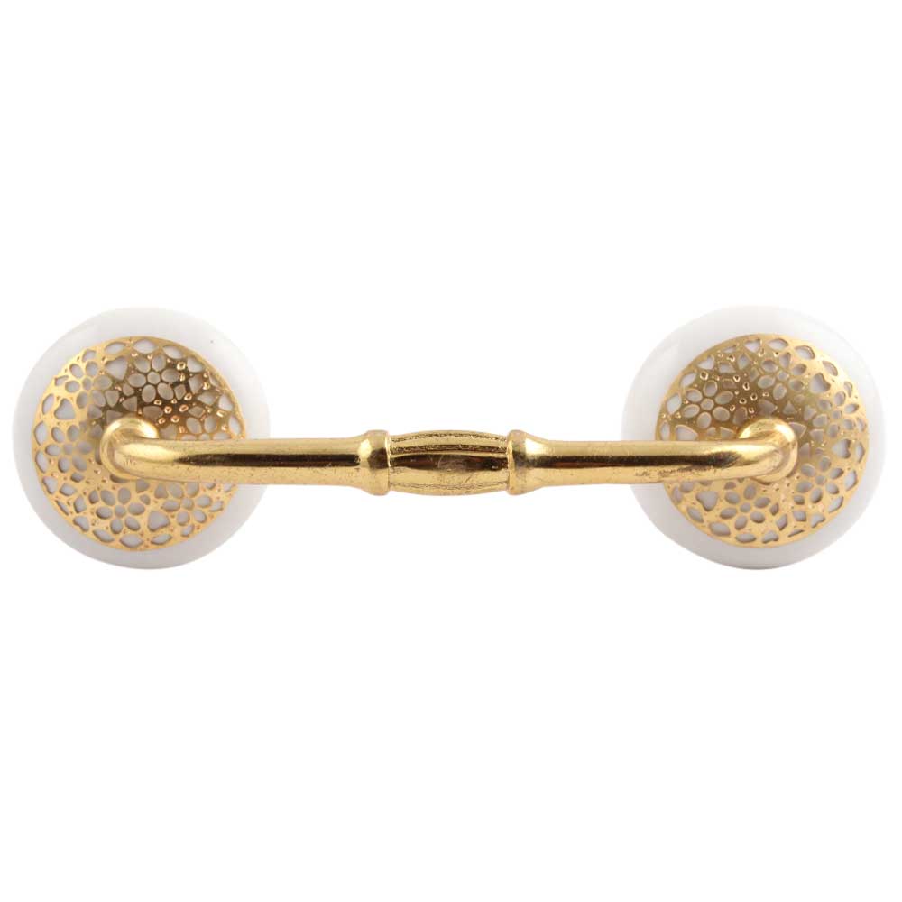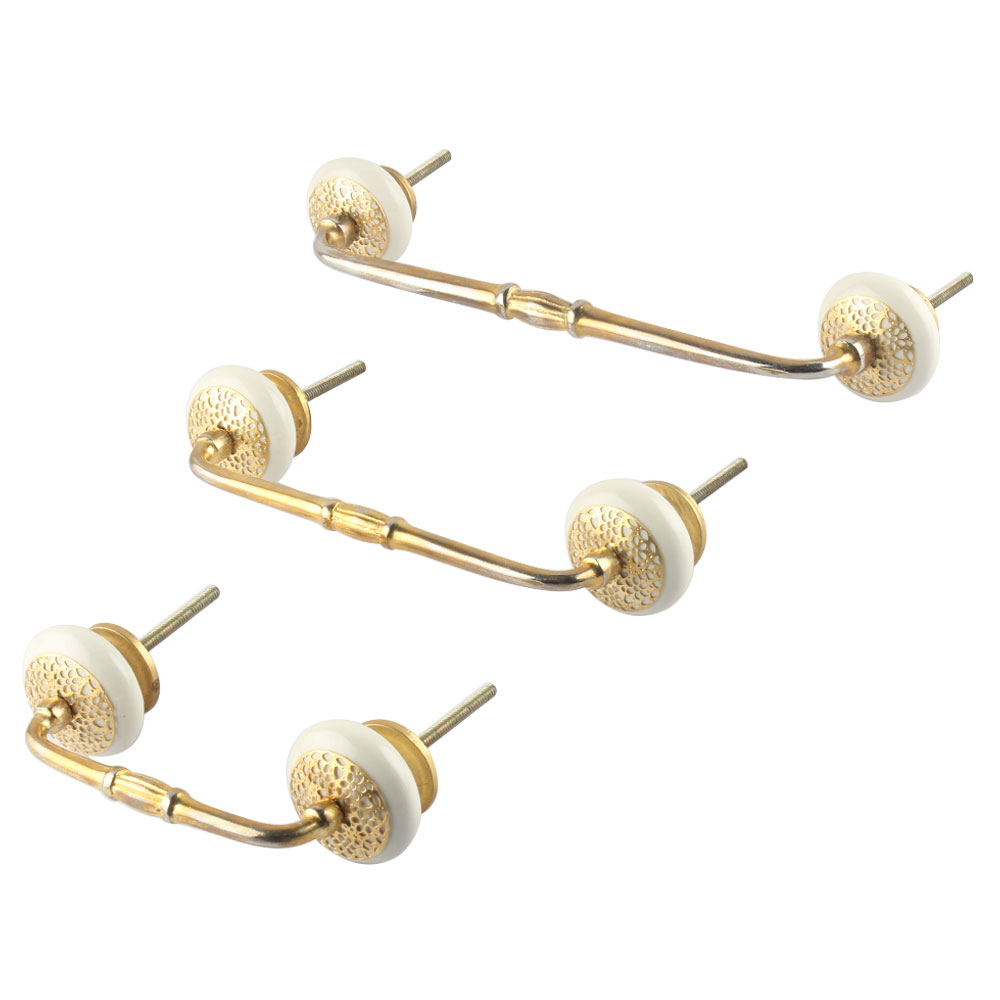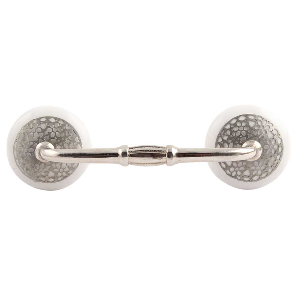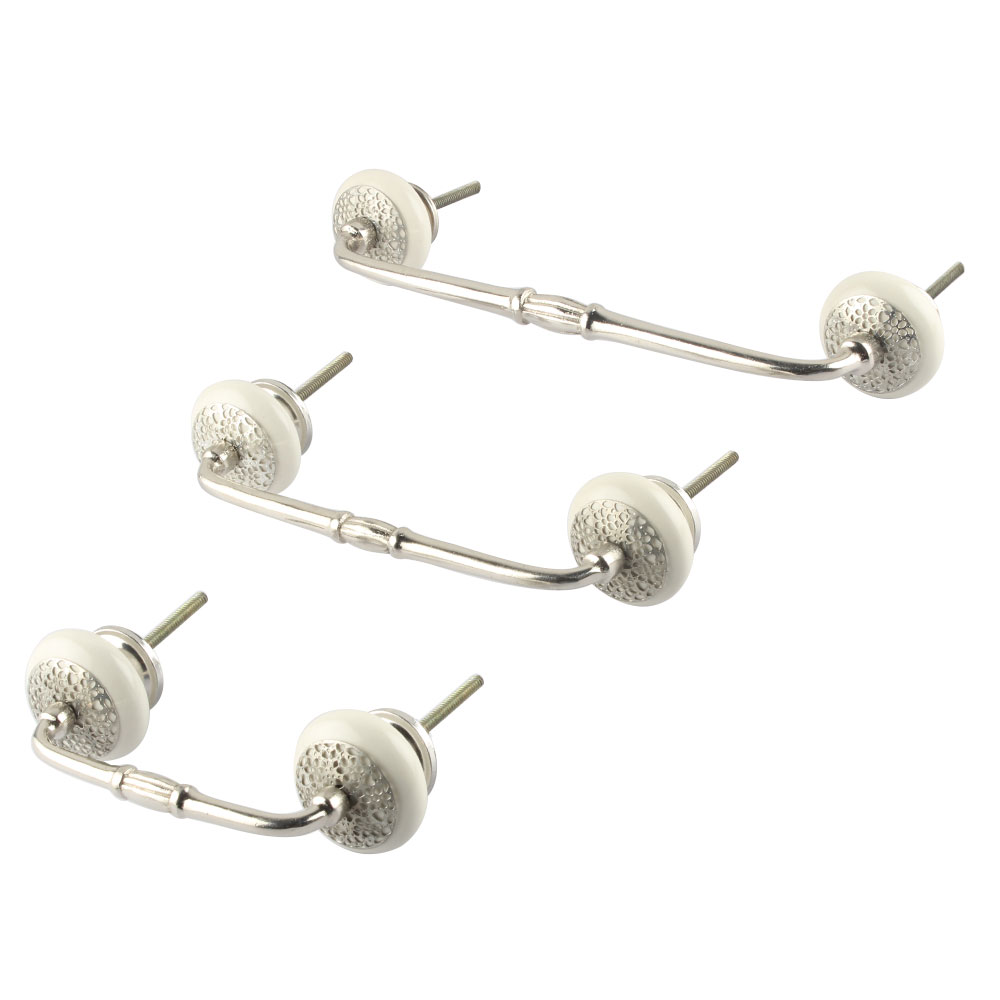 White Strewn Flat Ceramic Bridge Handle. Ideal for Drawer, Dresser, Cabinet, Wardrobe, Cupboard and Almirah.