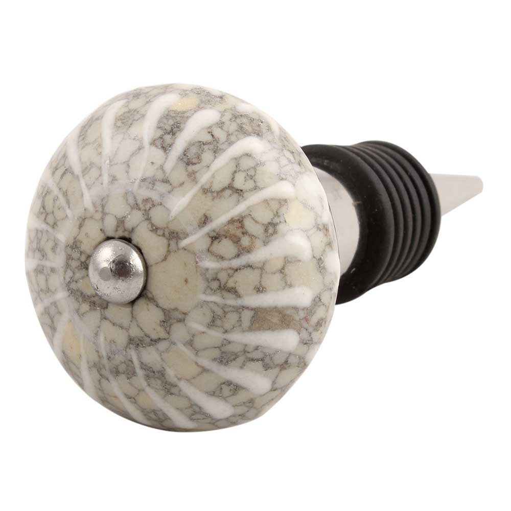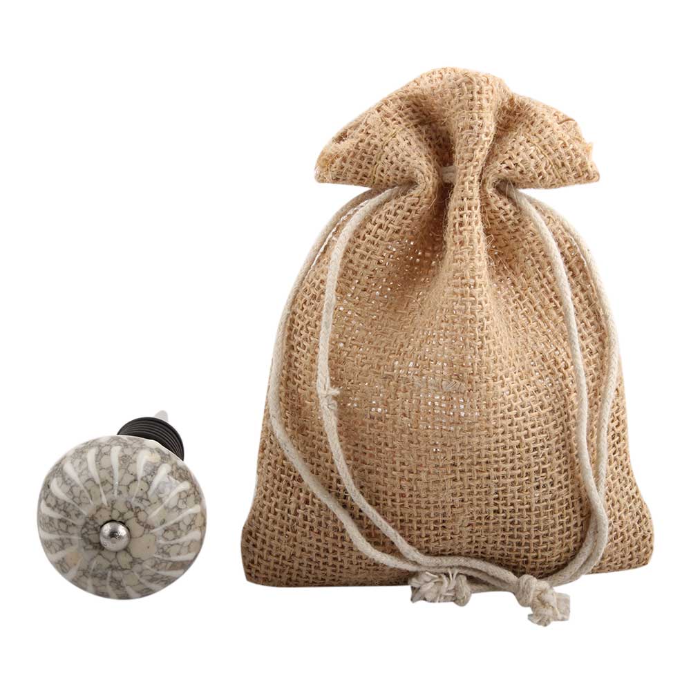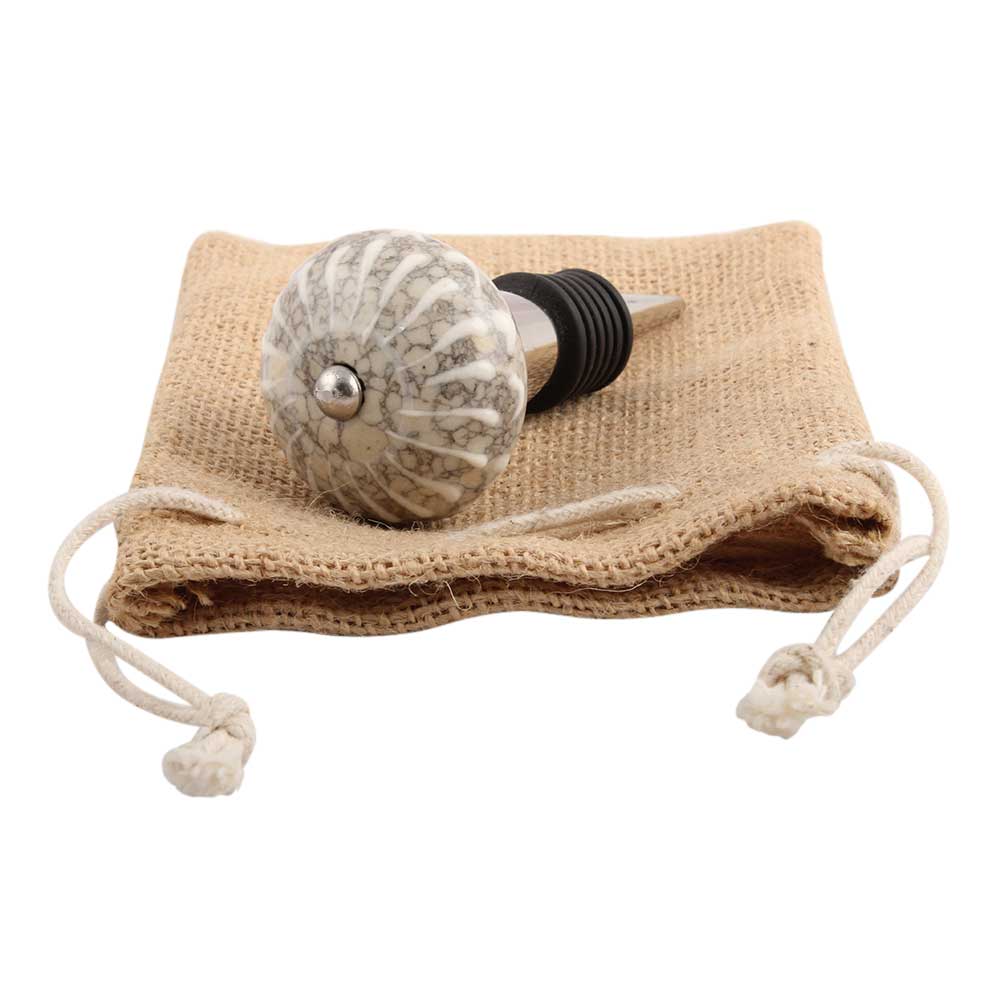 White Wheel Crackle Ceramic Wine Stopper.Zinc Alloy Wine Bottle Stopper with Attractive Jute Bag Packaging.
