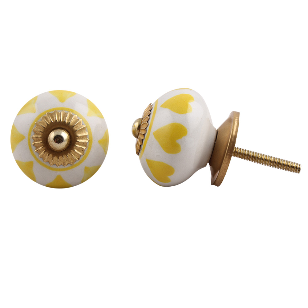White Yellow Heart Ceramic Cabinet Knob, kitchen drawers, dining room, bed room, chest drawers, dressing tables, almirah