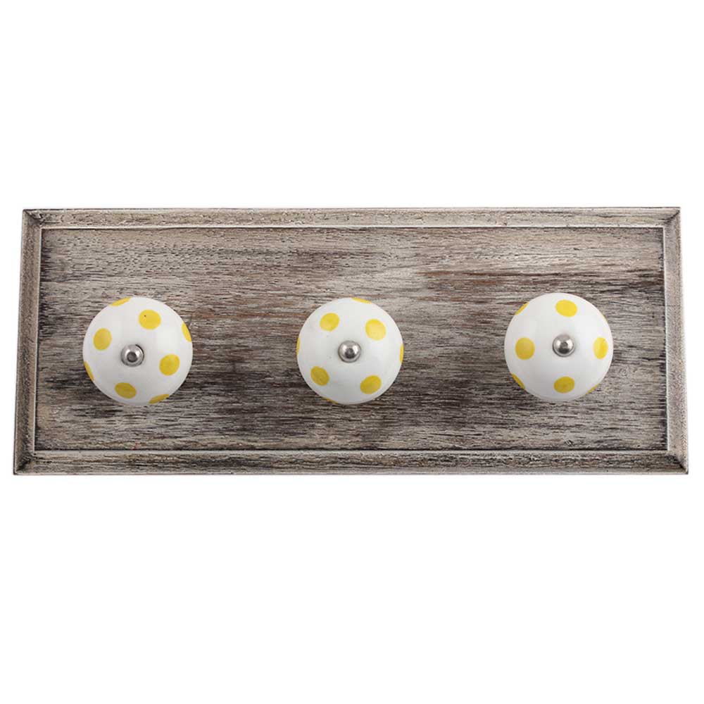 White Yellow Wooden Hooks. A Perfect Complement to the Soft Tone of the Wood are these White Traditional Hat Coat Hook Made of Genuine Porcelain and Brass. It can be use to Hang Jewellery, Leashes, Towels, Scarves, Light Weight Sweaters, Caps Etc.