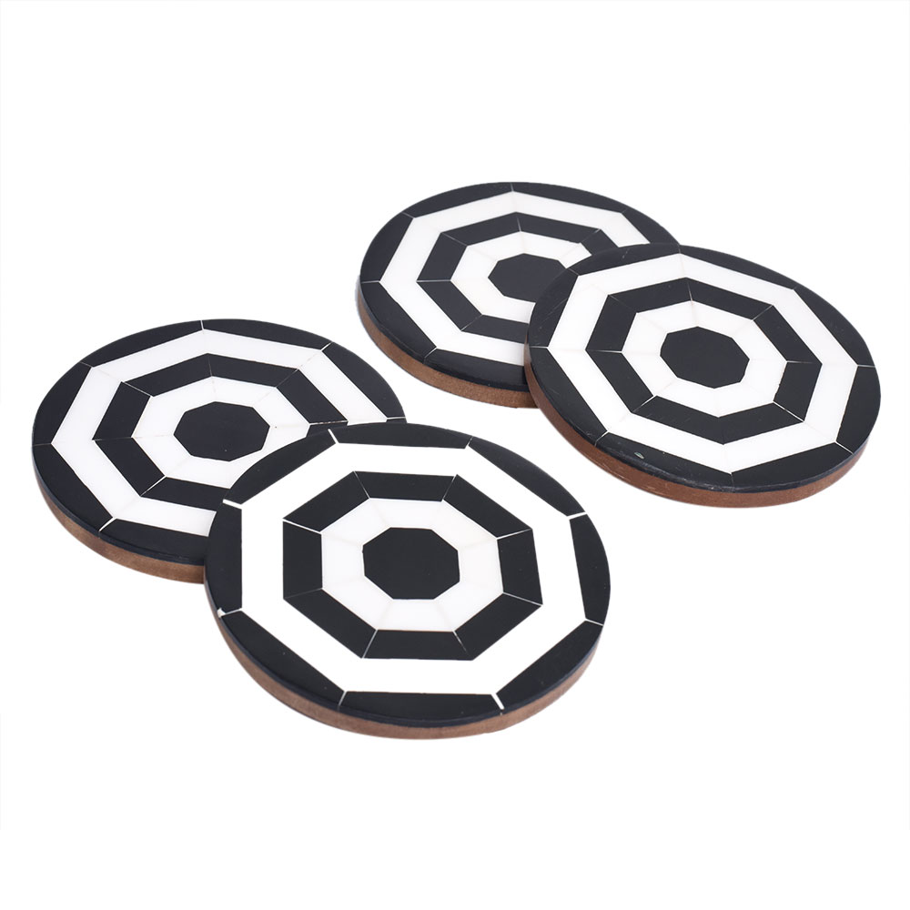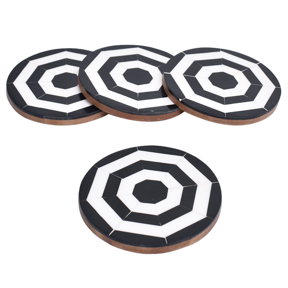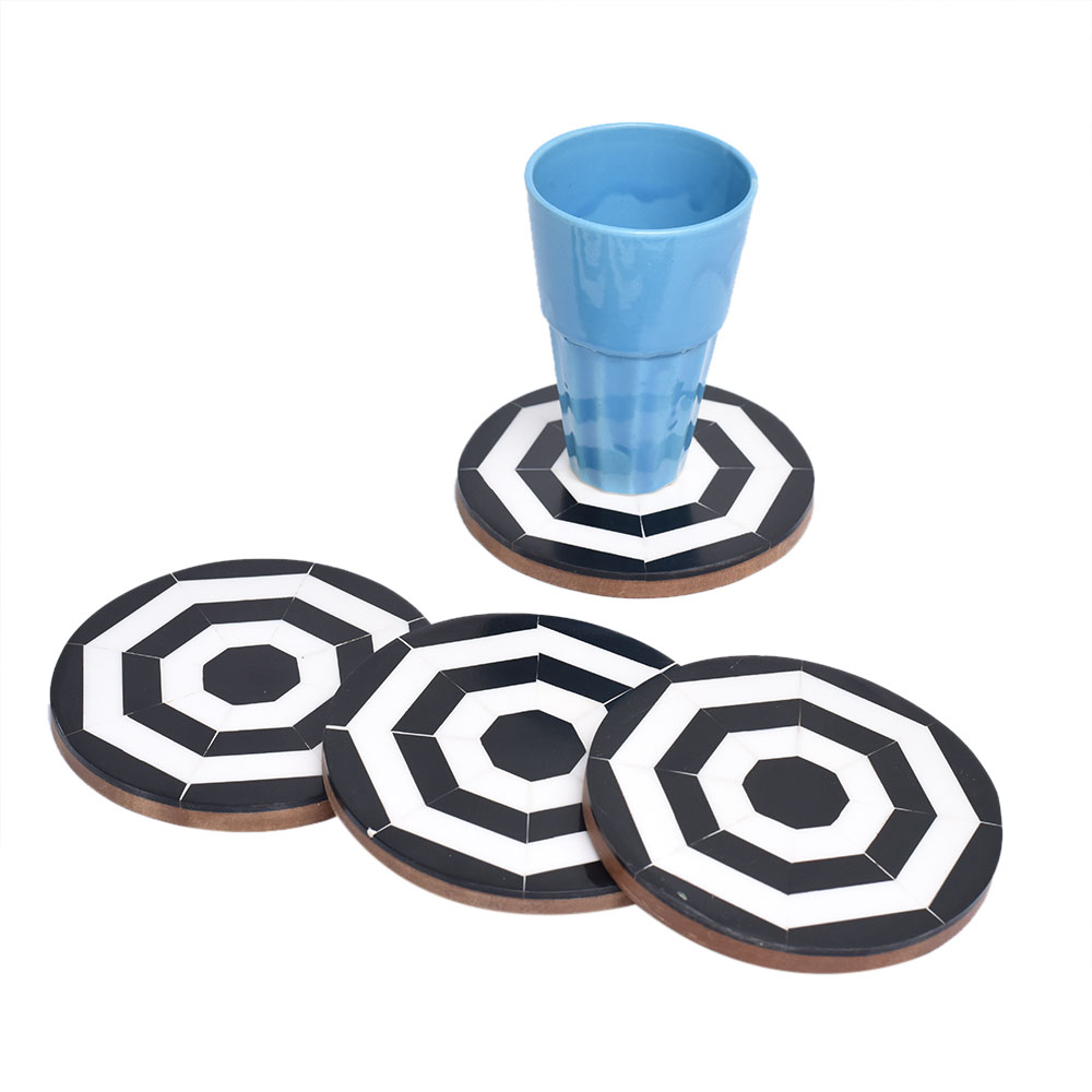 These exclusive round black and white pattern coasters made of wood and resin will add a beautiful touch to your table. The coasters are small table accessories that add a touch of indian eloquence to your desk, table, workspace, and countertops by keeping them clean and dry. Ideal for use at home, bars, restaurants, bars, coffee shops, companies, offices, education institutions, religious institutions, special occasions, catering, events, and daily use.