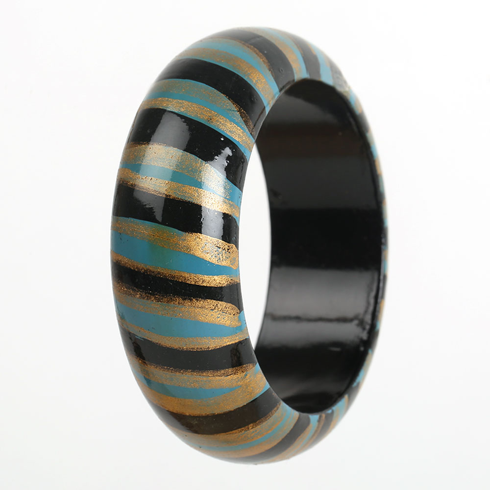 Embrace the warmth of handcrafted beauty with this multicolor wooden bangle, created by skilled artisans using sustainably sourced wood. The 2.75 cm wide band showcases intricate hand-painted detailing, blending rustic charm with vibrant artistry. Lightweight yet expressive, this bangle captures the essence of eco-conscious fashion — a perfect mix of tradition, texture, and timeless design.
