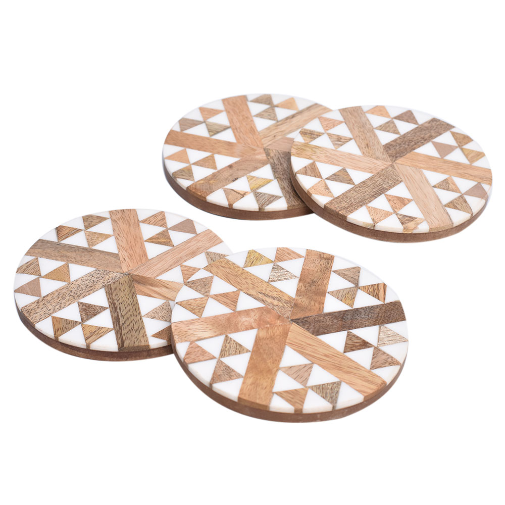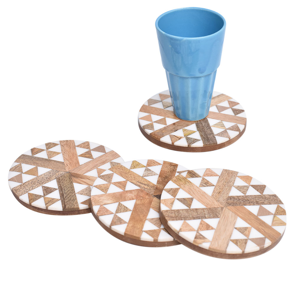 These beautiful and functional wooden coasters with inlay will undoubtedly add a touch of sophistication to your cocktail or drinks serving ware. The wooden finish adds an earthy touch, and the inlay adds just the right amount of colour to help it blend in with any interior setting. Ideal for use at home, bars, restaurants, bars, coffee shops, businesses, offices, schools, churches, special occasions, catering, events, and daily use.