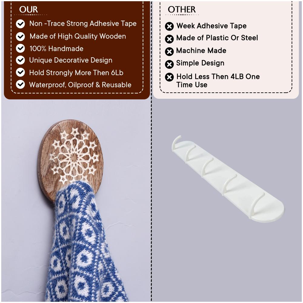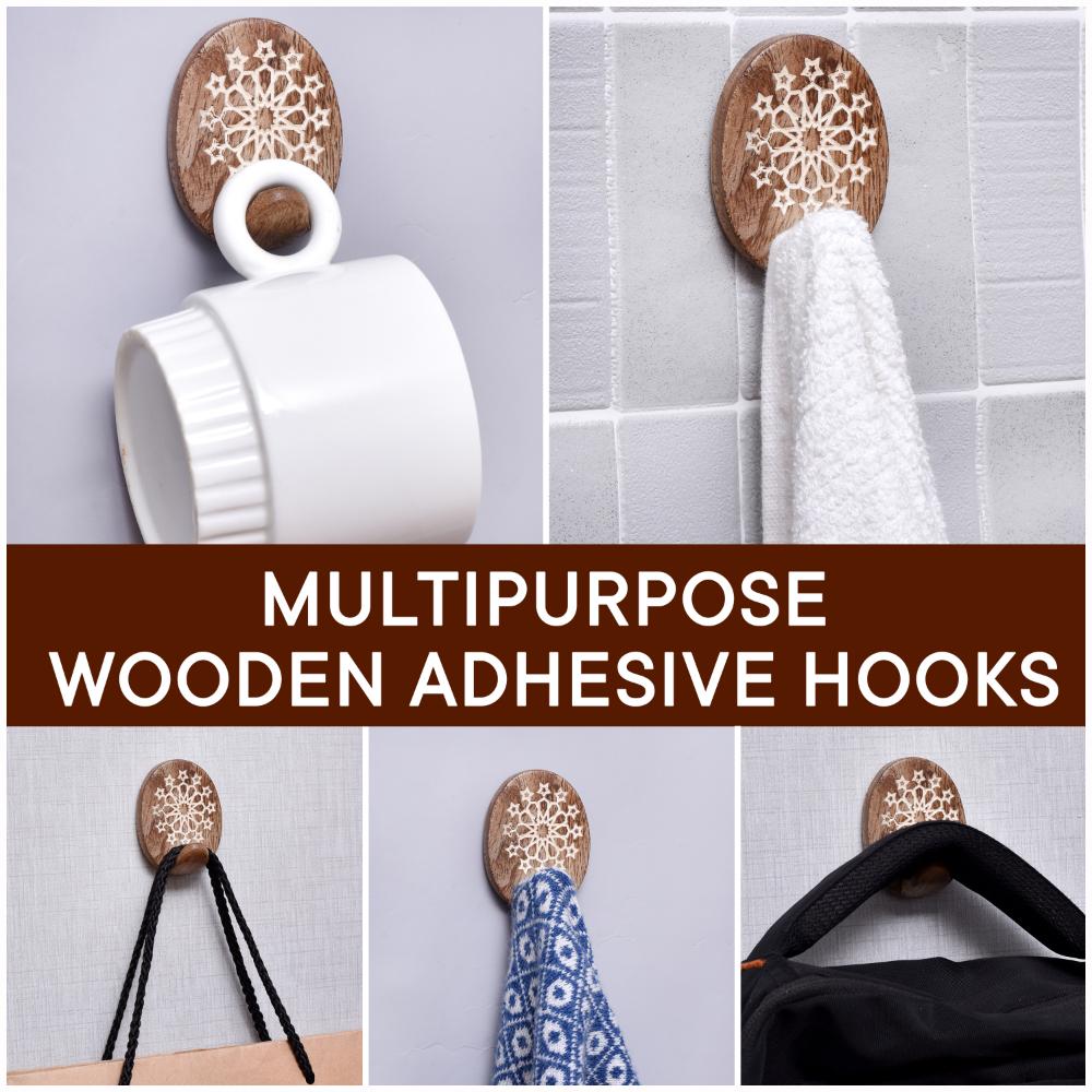 Enhance your home with the Wooden Brown Floral Sticky Hook for Wall. This wall hook features a beautifully carved floral design on a wooden surface, seamlessly combining functionality and style. It provides a unique way to hang your essentials while elevating your space's decor. With its easy-to-use sticky back, installation is a breeze—no nails or screws required, making it suitable for any wall.