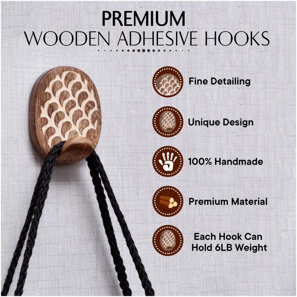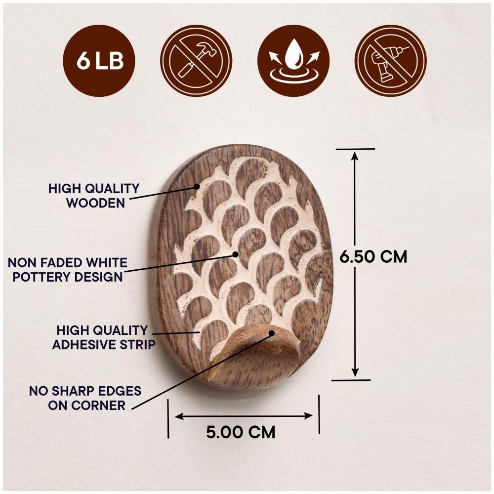 Material: Brown Premium Wood Finish: Natural brown wood-look base with glossy white hook Installation: Self-adhesive backing—tool-free and damage-free