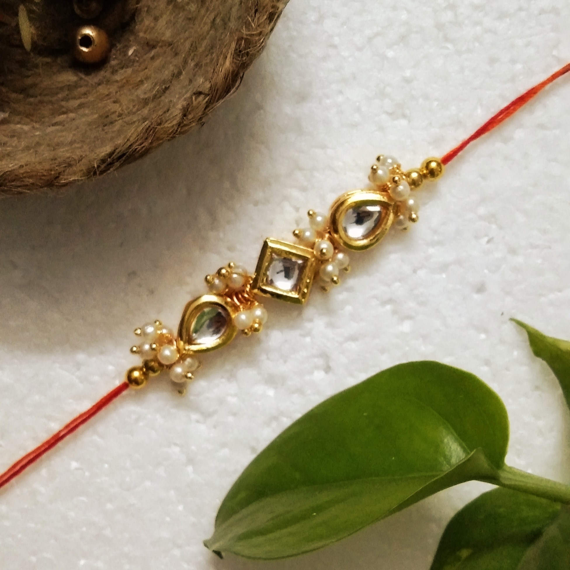 This designer rakhi uses wooden/acrylic/metal/kundan beads to create a festive accessory that's as unique as your bond, perfect for honoring traditions in style.