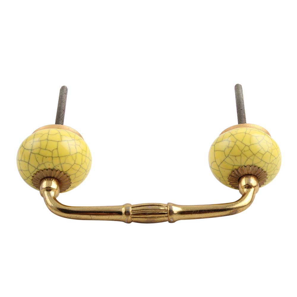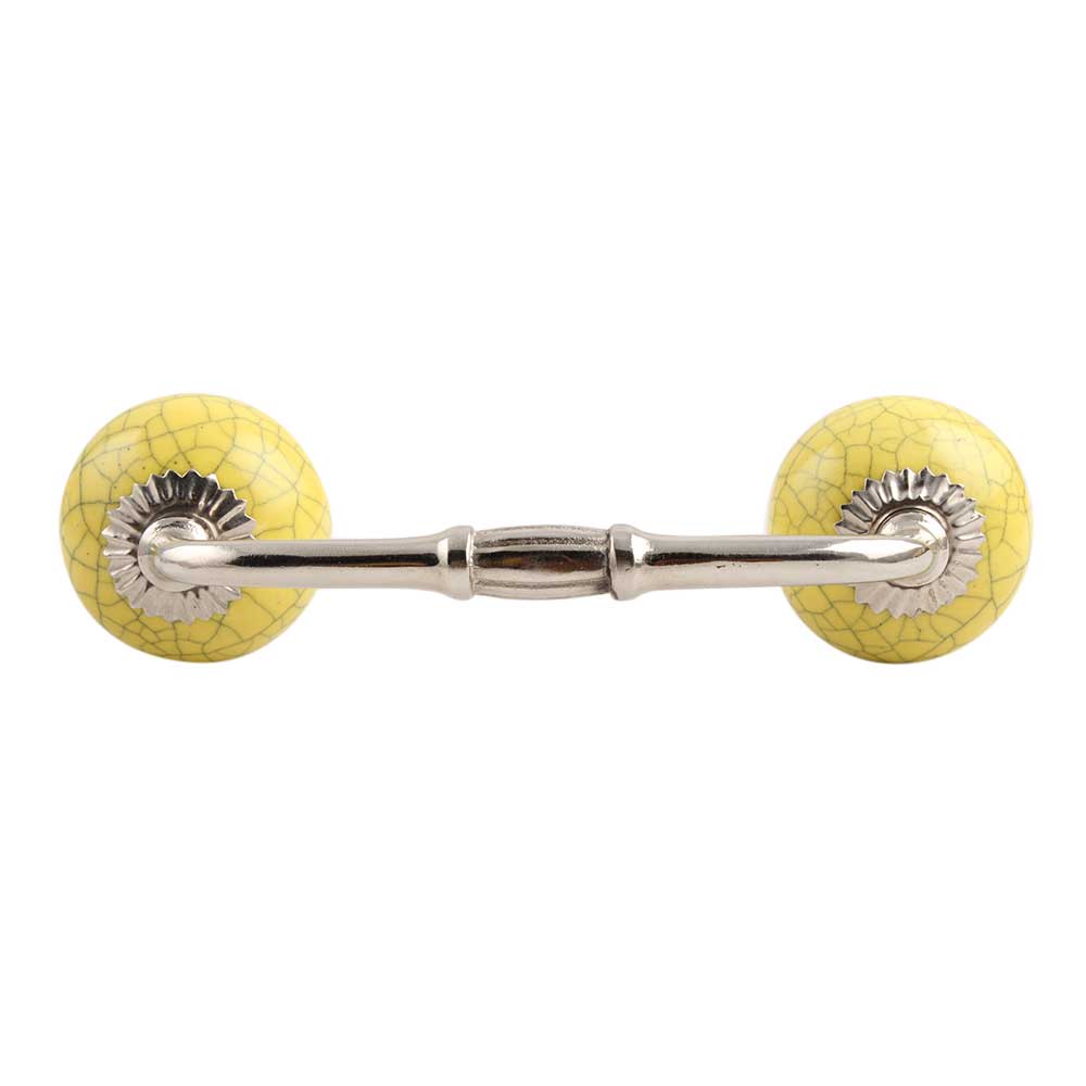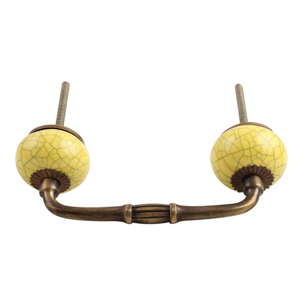 The Yellow Black Crackle Ceramic Bridge Handle features a striking crackle finish in bold yellow and black tones, creating a vibrant contrast that adds character and charm to your furniture. This handle showcases an eye-catching design that infuses a touch of artistic flair into cabinets, drawers, and doors. The bright yellow color, combined with deep black accents, offers a unique look that stands out in both modern and eclectic settings.