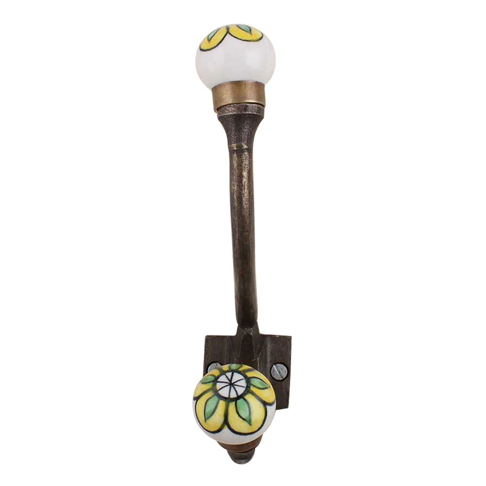 Yellow Black Green Iron Floral Hook-Ehg-69. When Put on Wall or Cabinet It Gives A Sturdy Look. This Hook is Strong Enough to Hold Your Cloths, Keys, Tea Cups, Coffee Mugs, Hand Towels Etc.