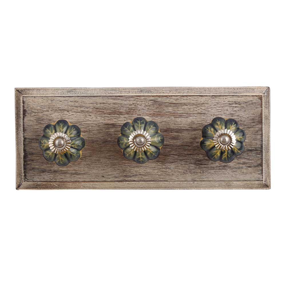 Yellow Blue Leaf Ceramic Wooden Hook. A Perfect Complement to the Soft Tone of the Wood are these White Traditional Hat & Coat Hook Made of Genuine Porcelain and Brass. It can be use to Hang Jewellery, Leashes, Towels, Scarves, Light Weight Sweaters, Caps Etc.