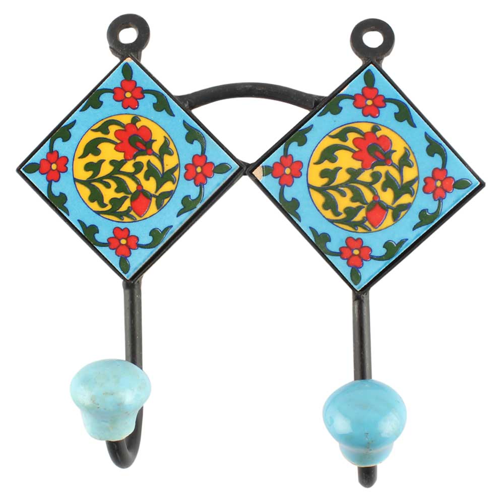 Yellow Ceramic Floral Tile Hook. When Put on Wall or Cabinet It is An Art in Itself. The Metal Part of this Hook is Black Powder Coated.