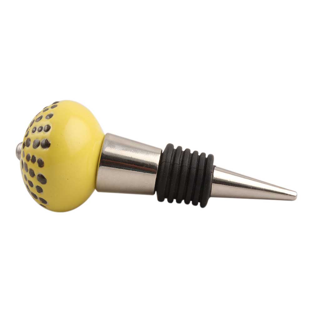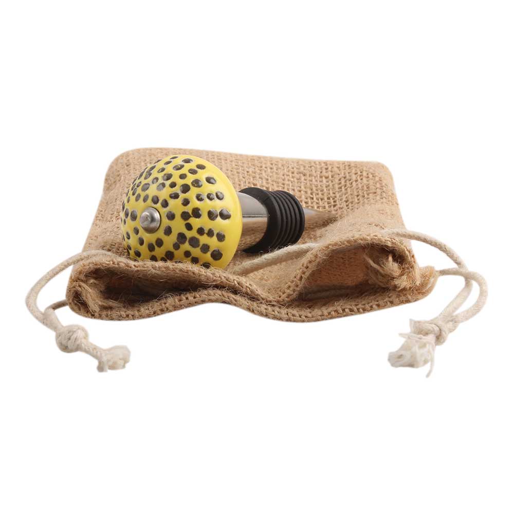 Yellow Ceramic Wine Stopper.zinc alloy wine bottle stopper with attractive Jute Bag Packaging.