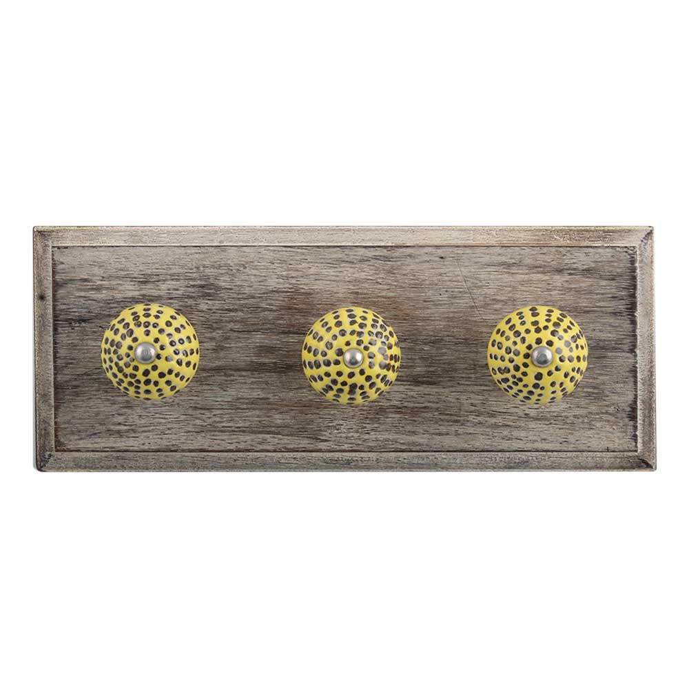 Yellow Ceramic Wooden Hook. A Perfect Complement to the Soft Tone of the Wood are these White Traditional Hat & Coat Hook Made of Genuine Porcelain and Brass. It can be use to Hang Jewellery, Leashes, Towels, Scarves, Light Weight Sweaters, Caps Etc.