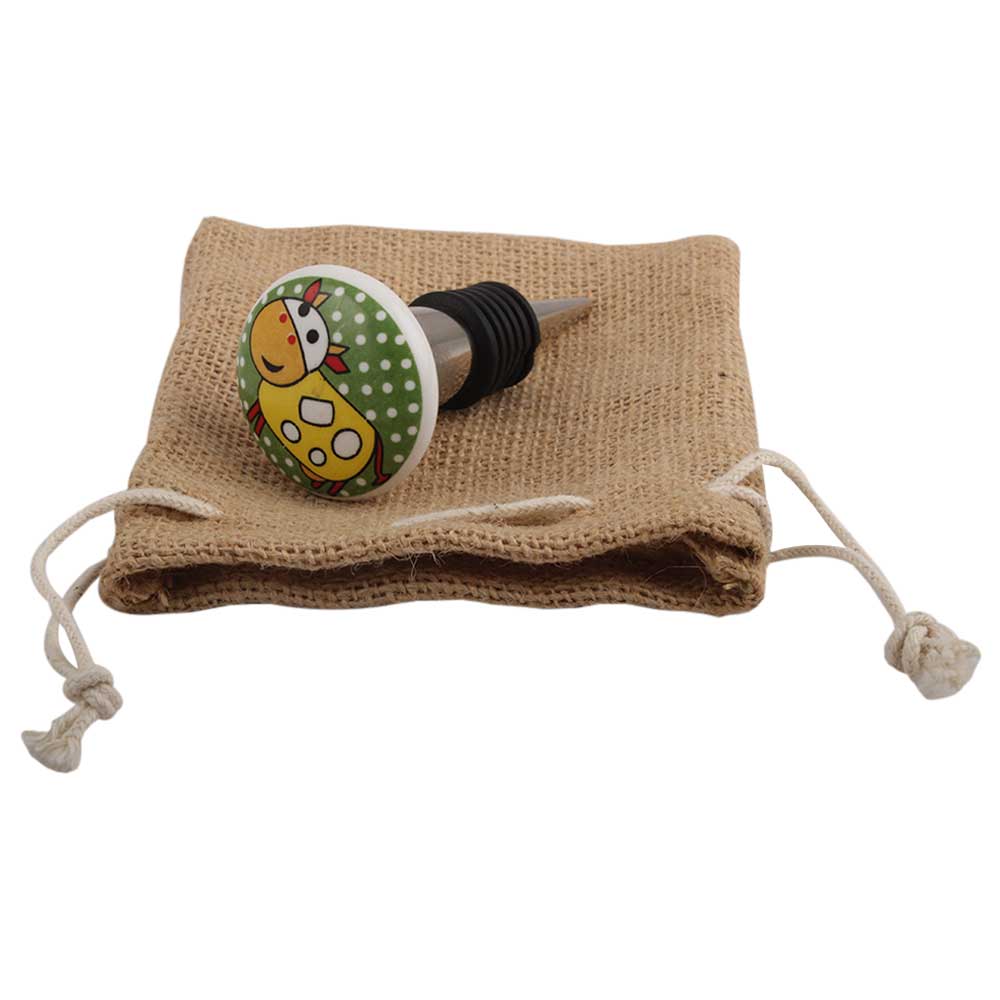 Yellow Cow Flat Ceramic Wine Stopper.zinc alloy wine bottle stopper with attractive Jute Bag Packaging.