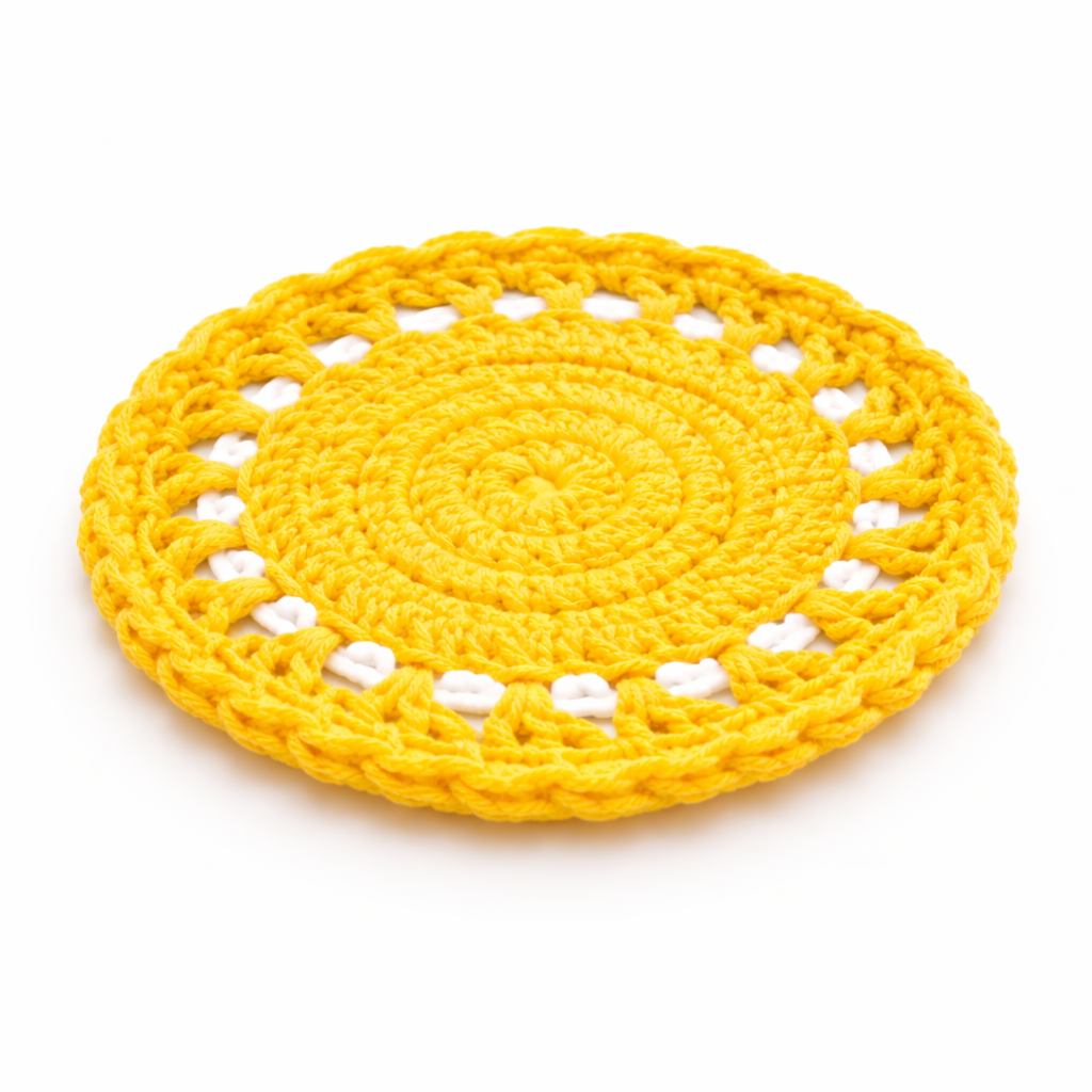 • Yellow Crochet Doily Coaster Handmade Cotton Yarn