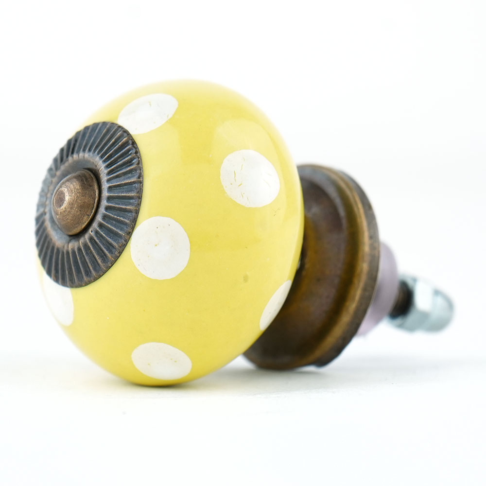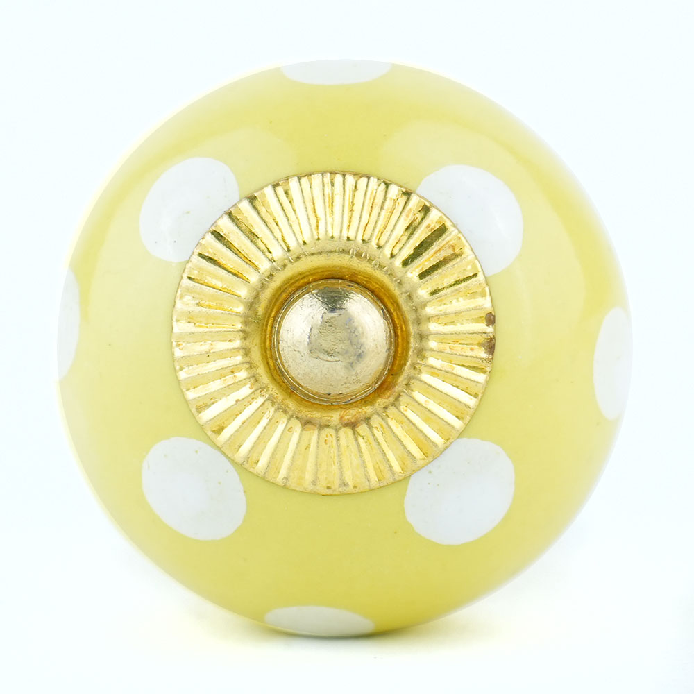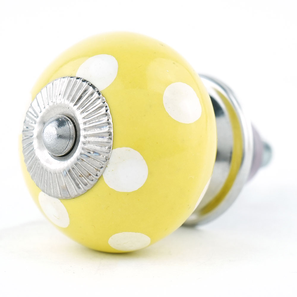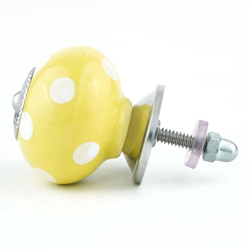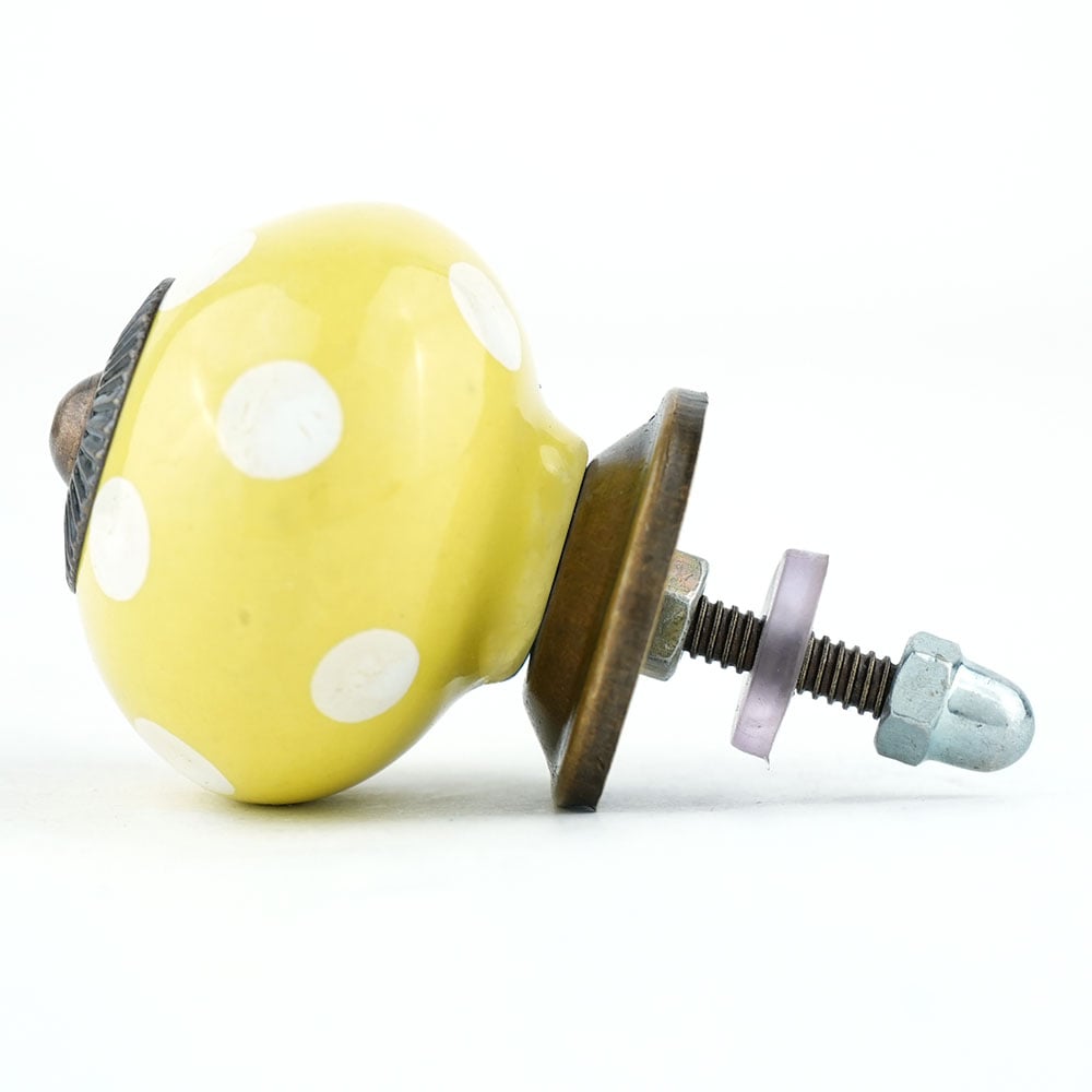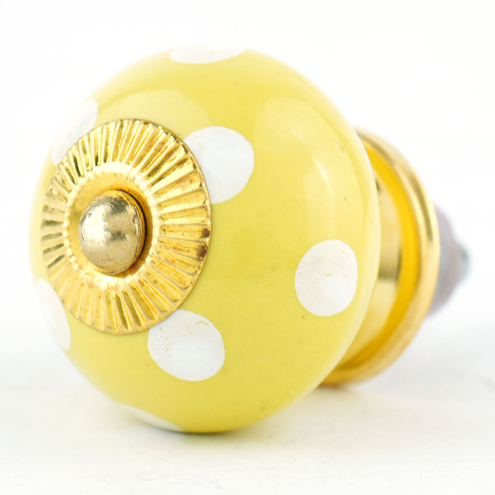 Yellow Dotted Small Ceramic Cabinet Knobs. Ideal for Drawer, Dresser, Cabinet, Wardrobe, Cupboard and almirah