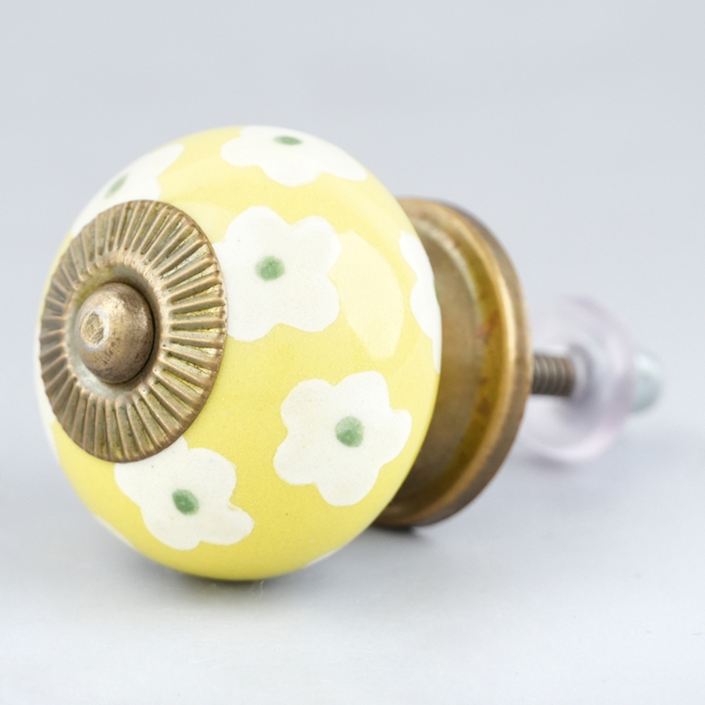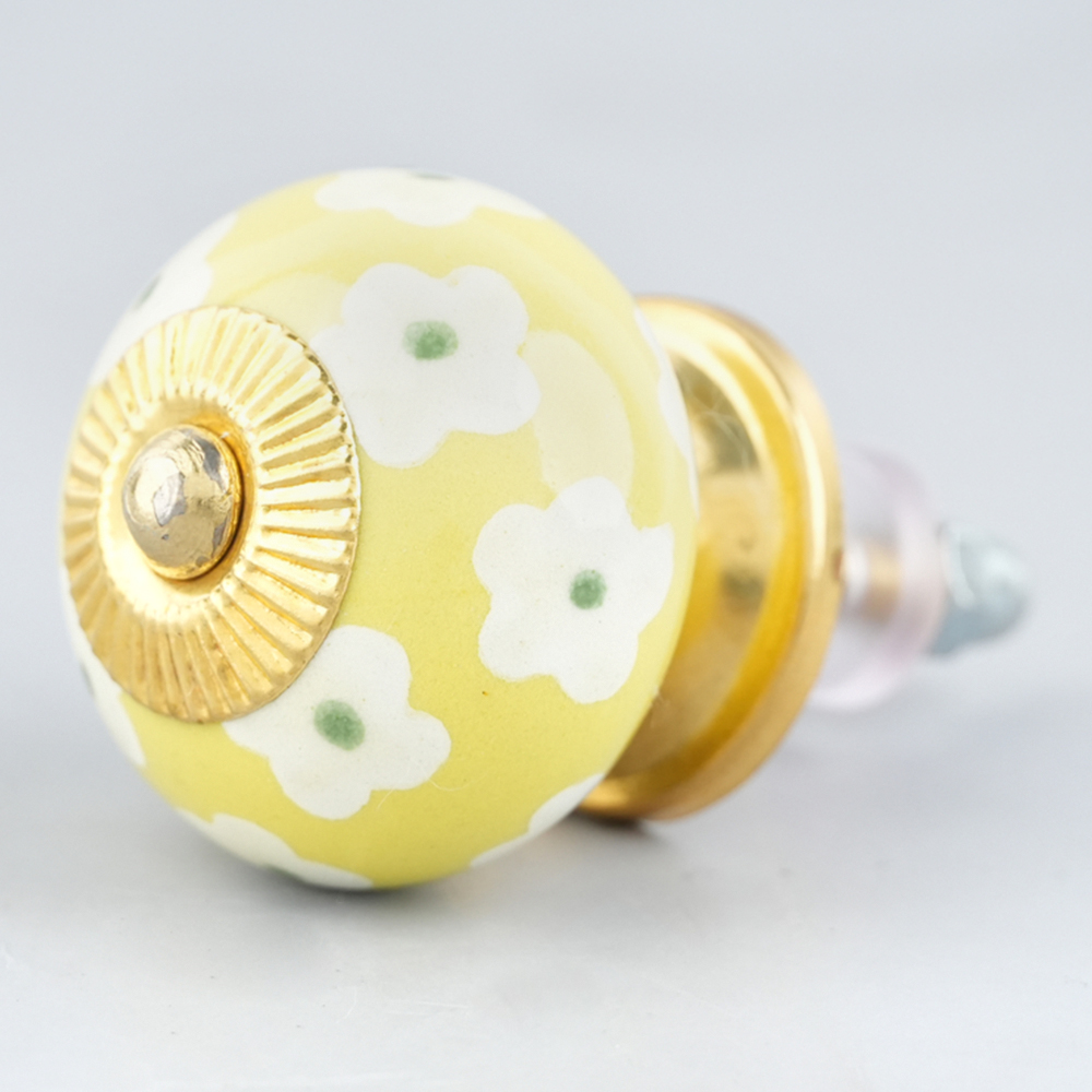 Yellow Floral Ceramic Knob, kitchen drawers, dining room, bed room, chest drawers, dressing tables, almirah