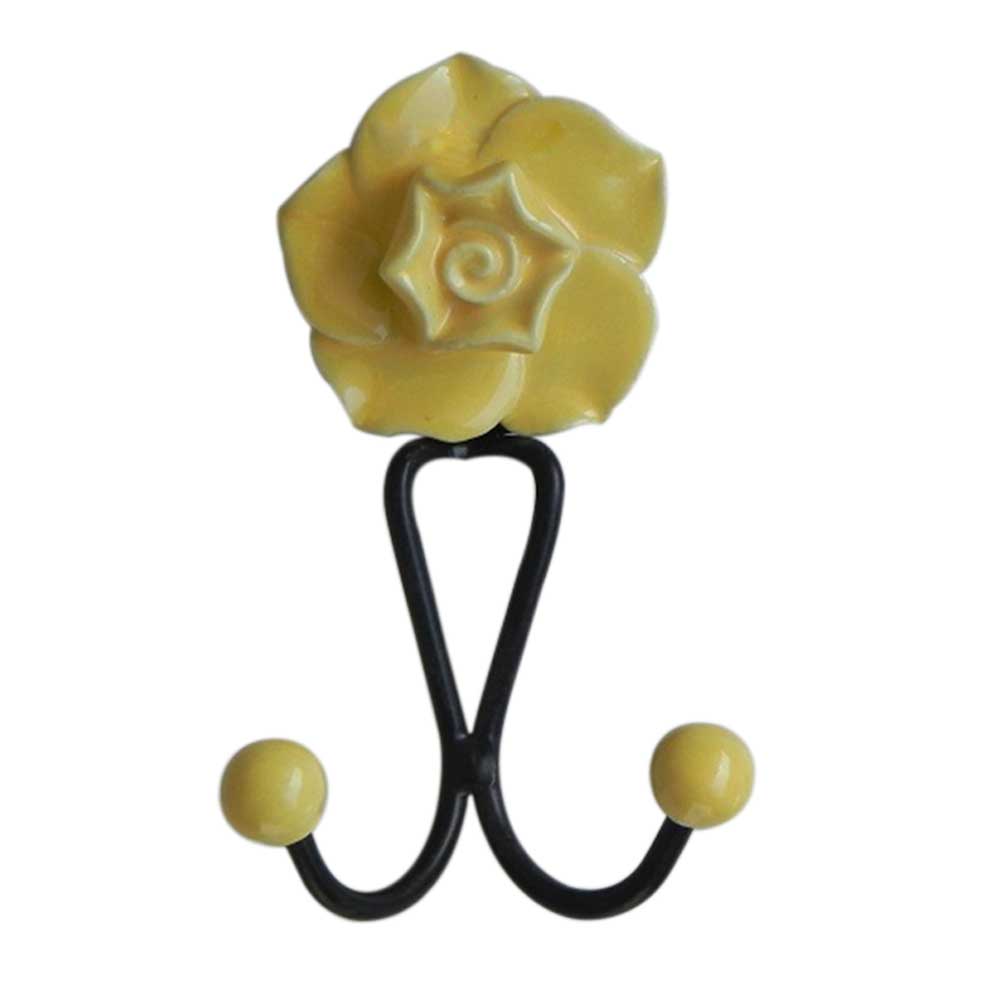 Yellow Flower Hook . When Put on Wall or Cabinet It is An Art in Itself. This Black Powder Coated Iron Hook is Strong Enough to Hold Your Cloths.