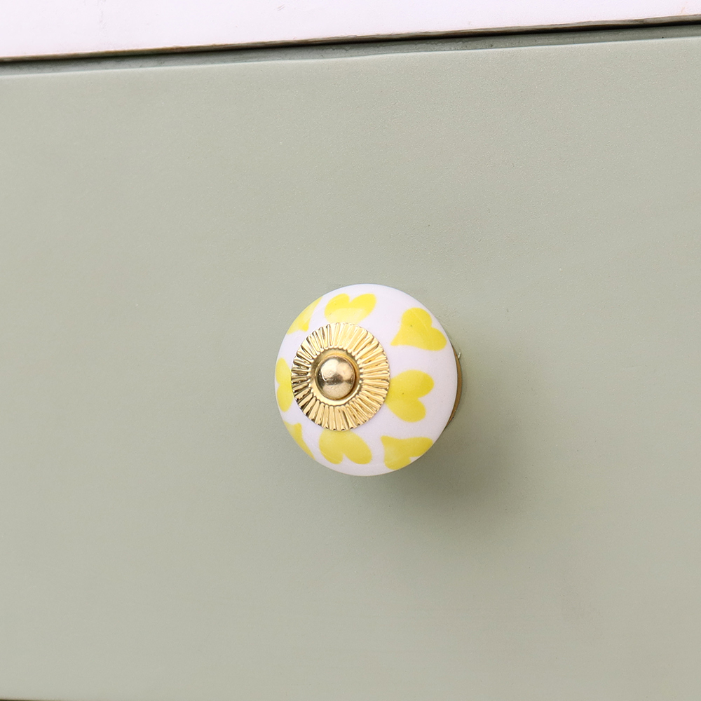 Yellow Heart Ceramic Drawer Knob, kitchen drawers, dining room, bed room, chest drawers, dressing tables, almirah