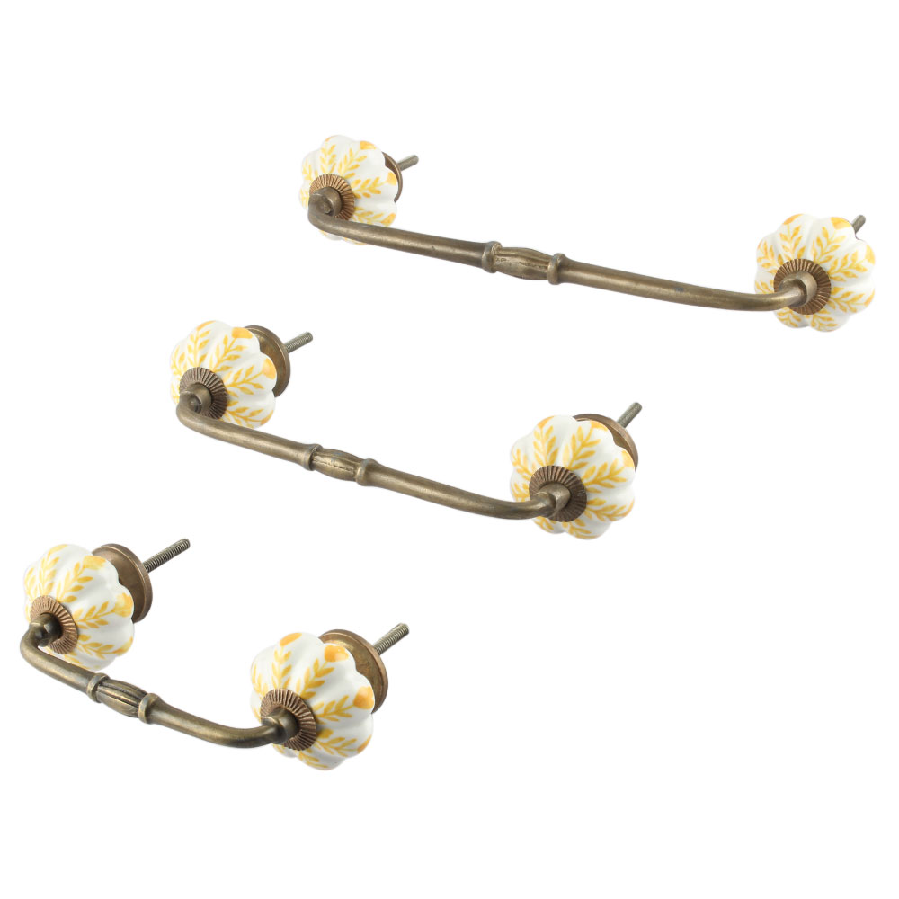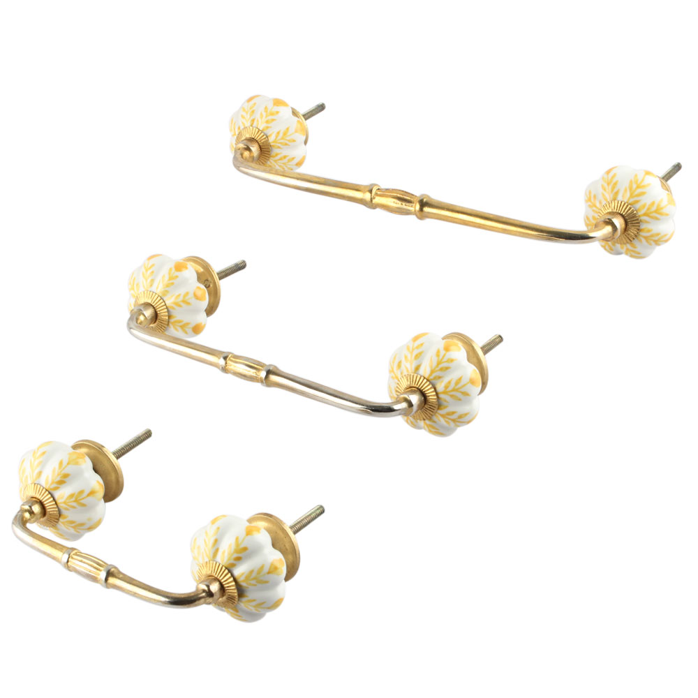 Yellow Leaf Melon Ceramic Bridge Handles. Ideal for Drawer, Dresser, Cabinet, Wardrobe, Cupboard and Almirah etc.