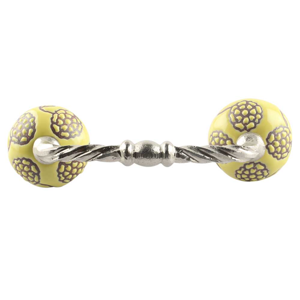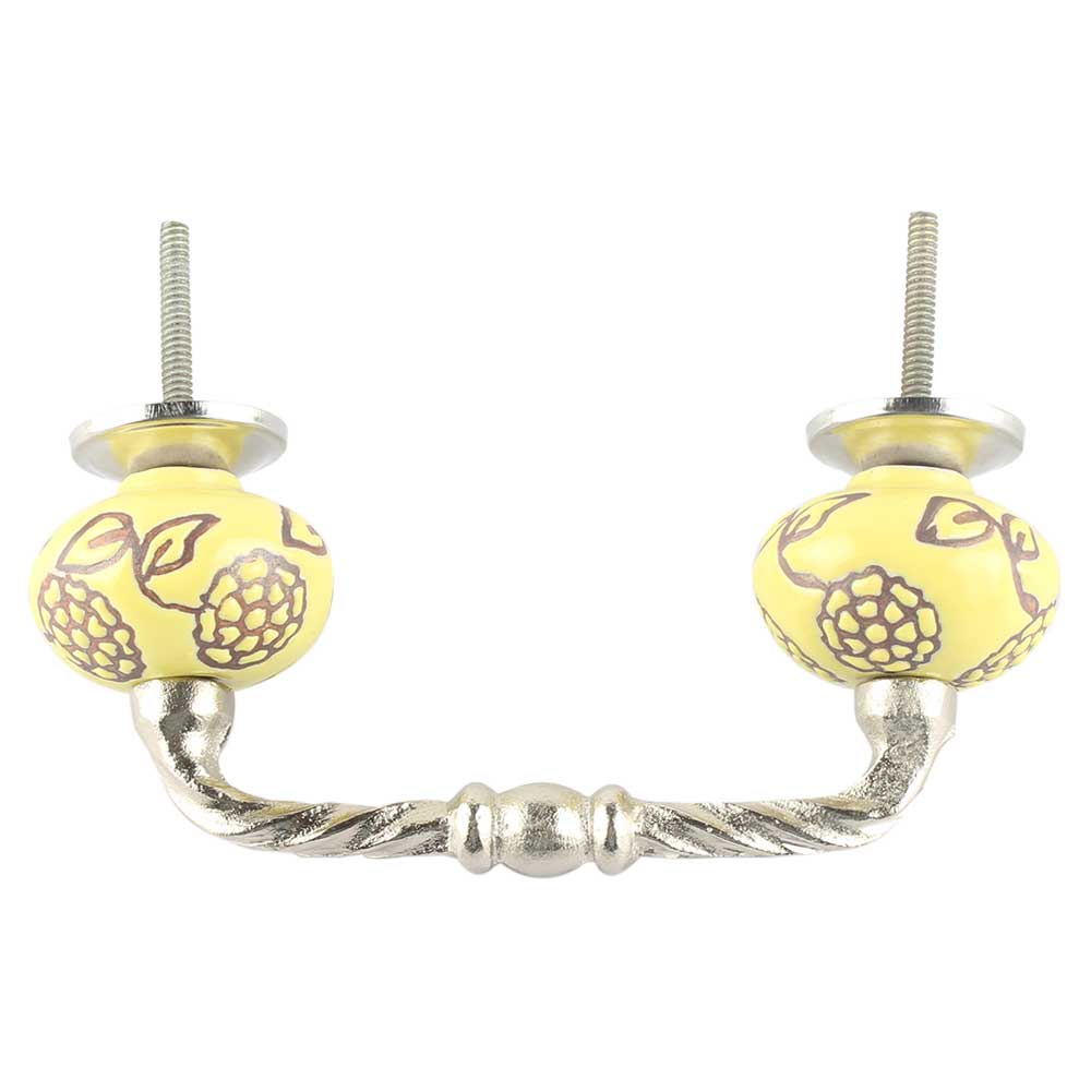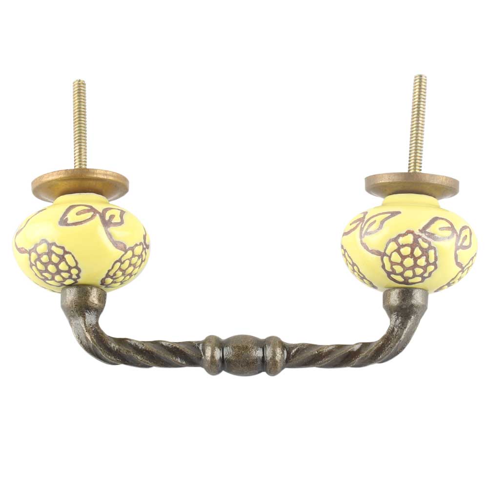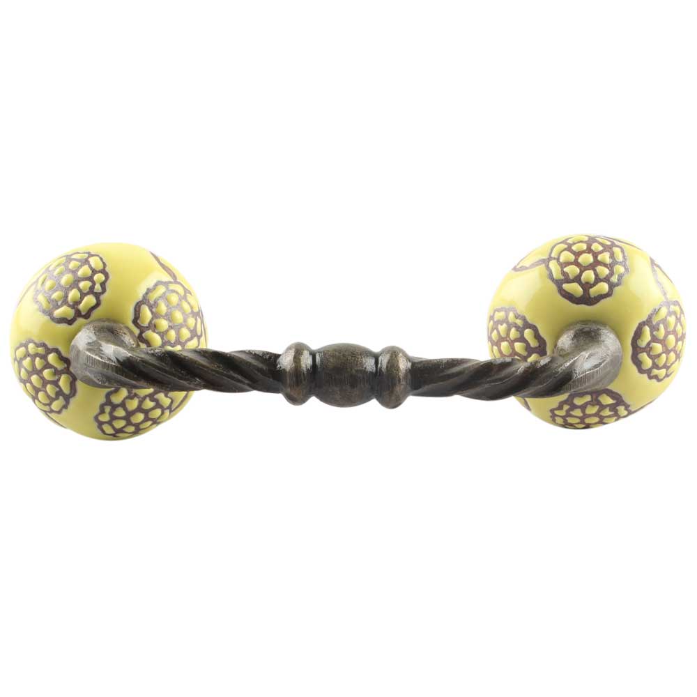 Yellow Marigold Etched Floral Ceramic Cut Bridge Handle. Ideal for Drawer, Dresser, Cabinet, Wardrobe, Cupboard and Almirah etc.
