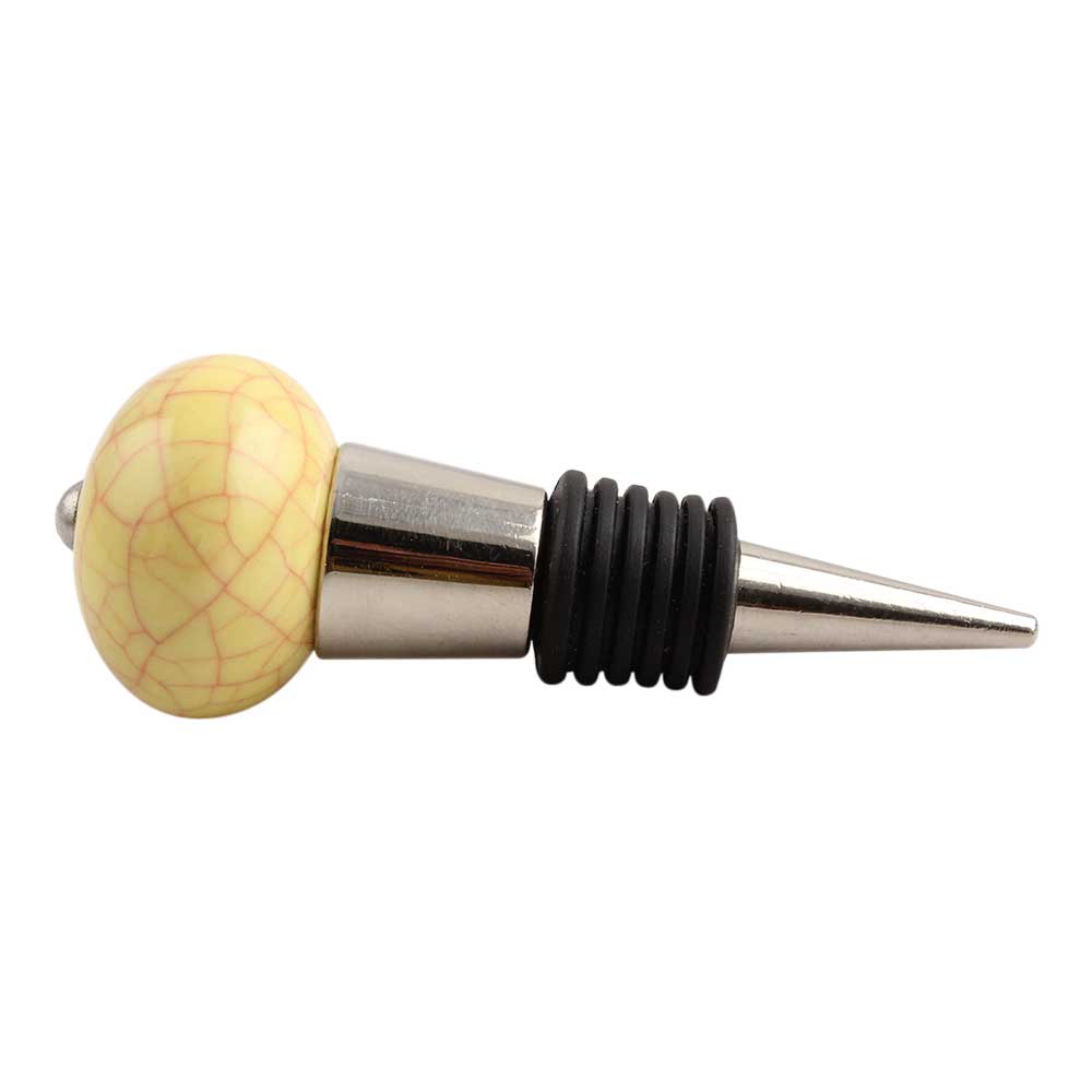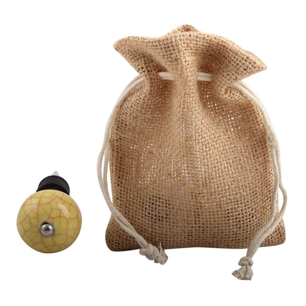 Yellow Pink Crackle Ceramic Wine Stopper.zinc alloy wine bottle stopper with attractive Jute Bag Packaging.