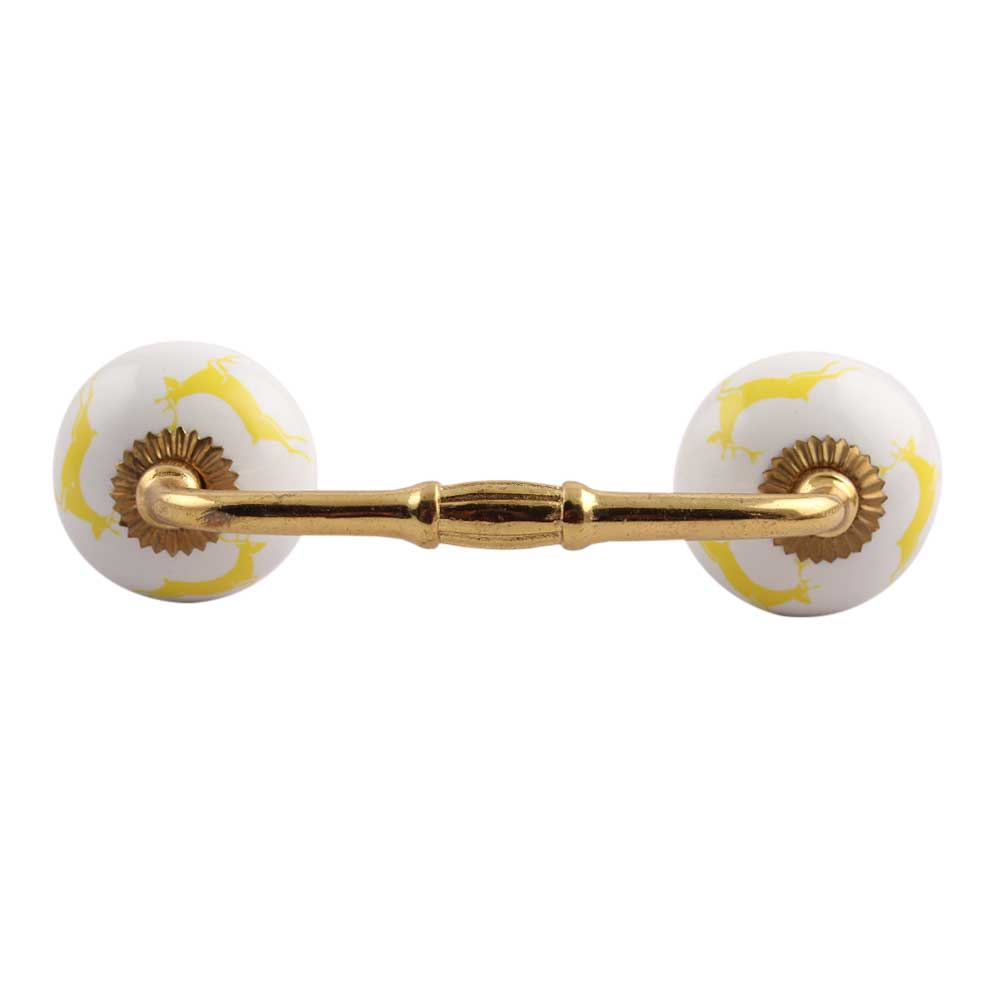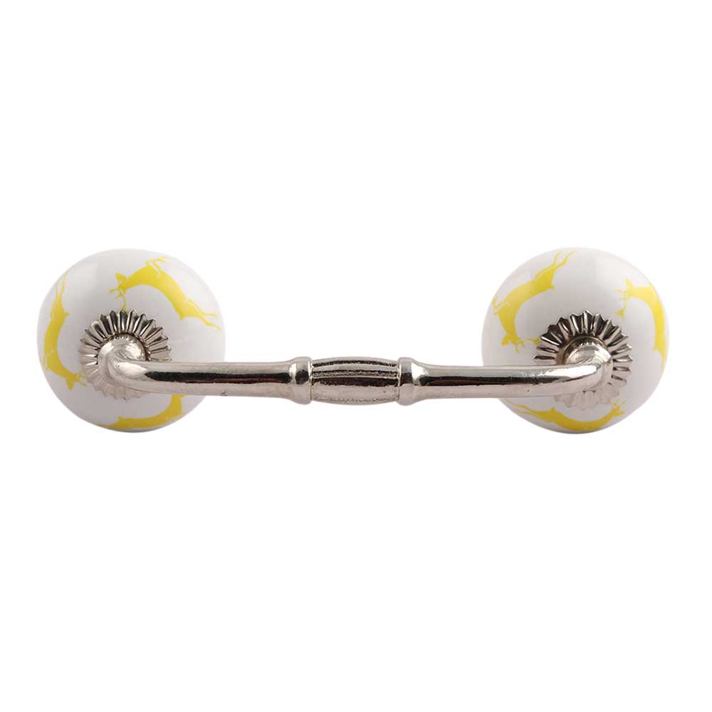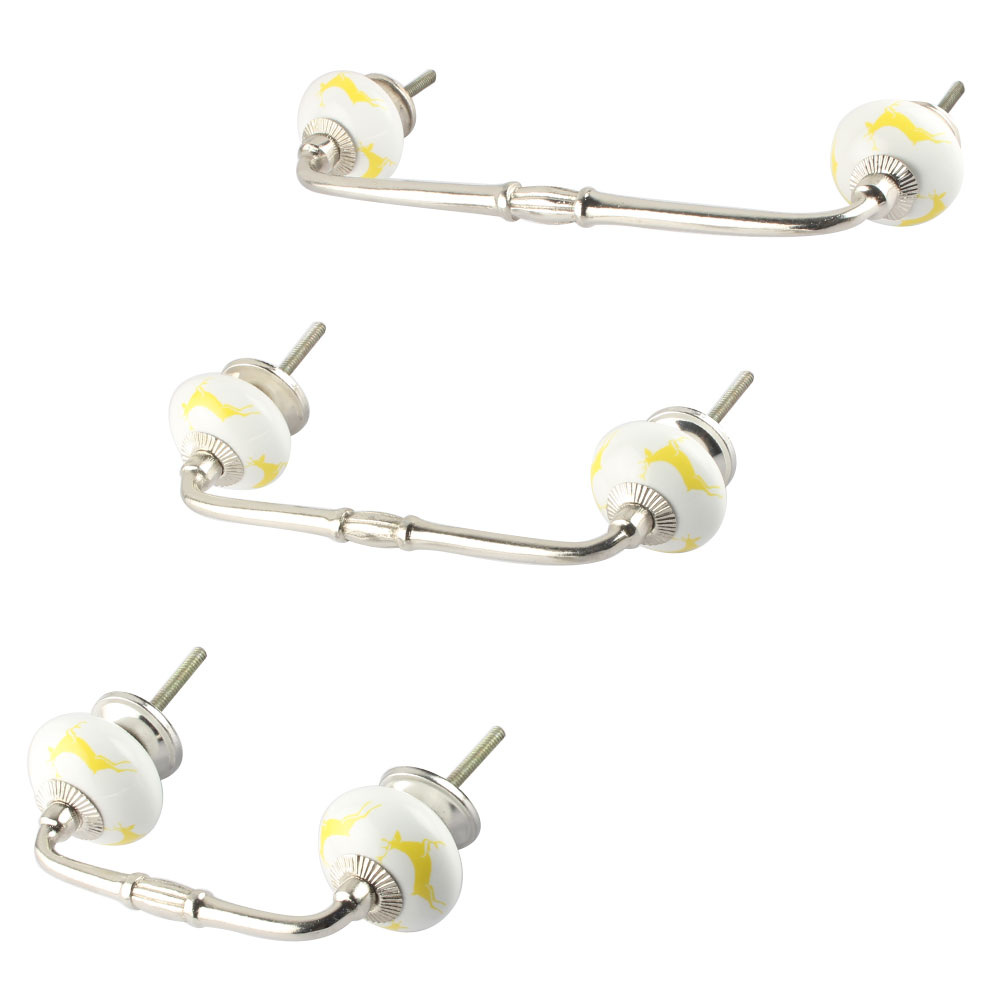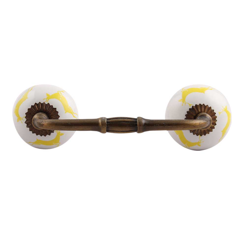 Yellow Running Rein Deer Pattern Ceramic Bridge Handle. Ideal for Drawer, Dresser, Cabinet, Wardrobe, Cupboard and Almirah.