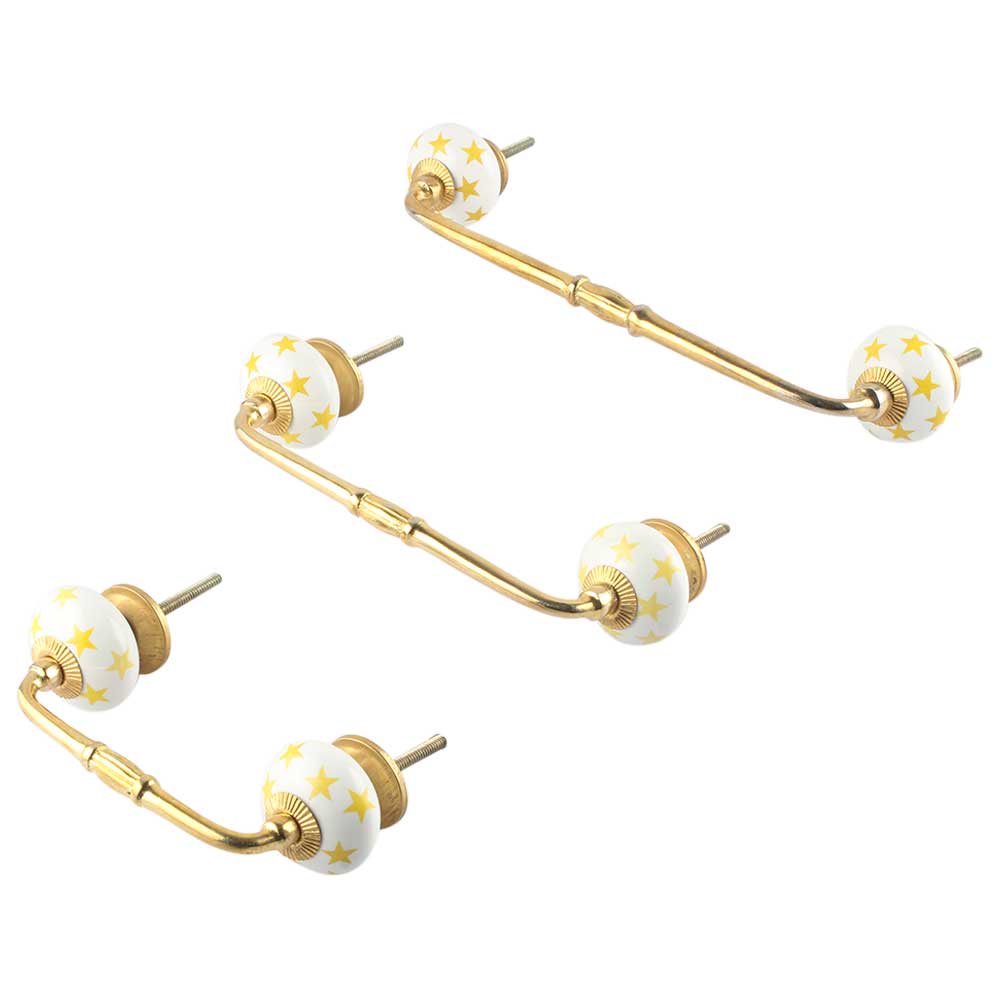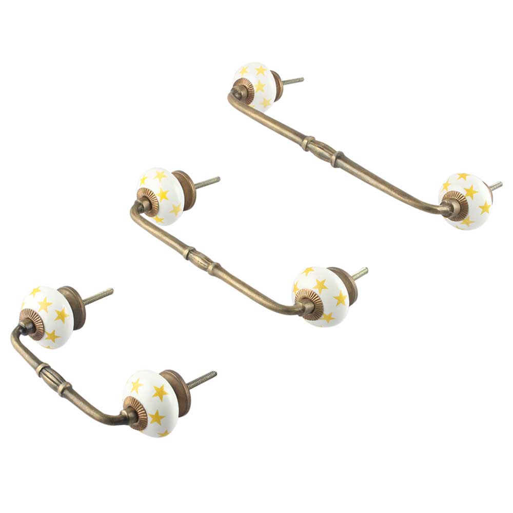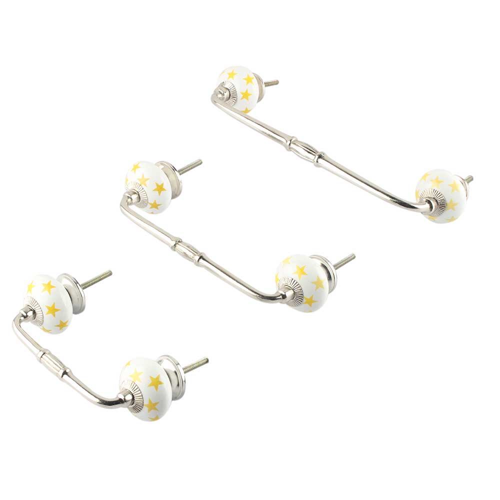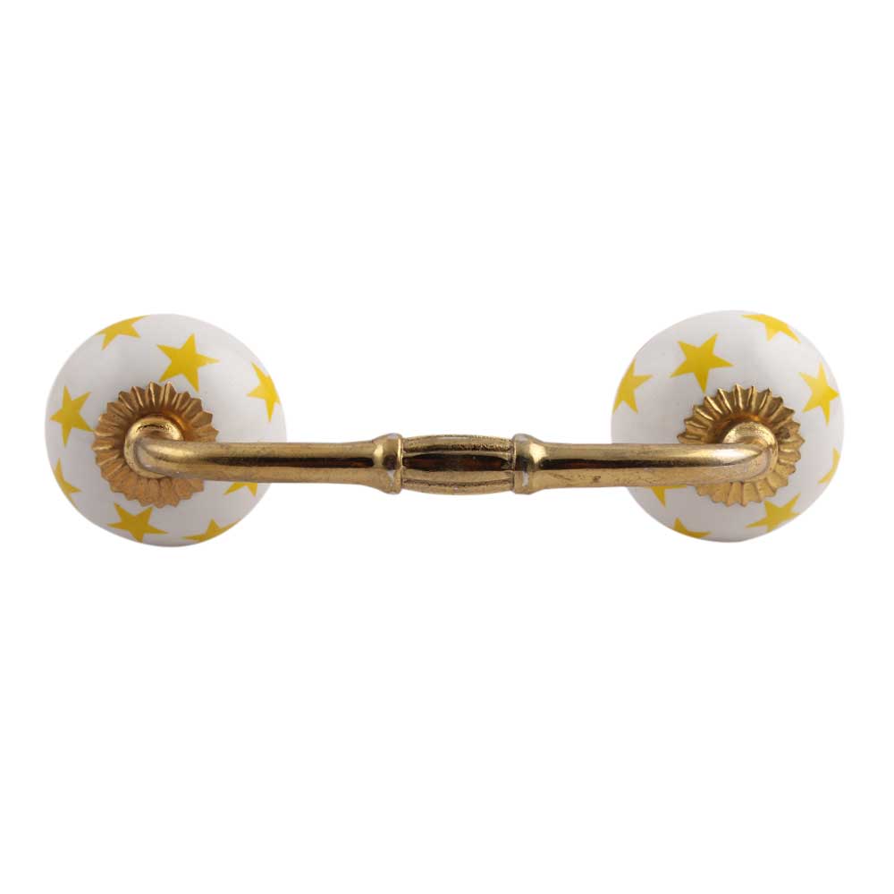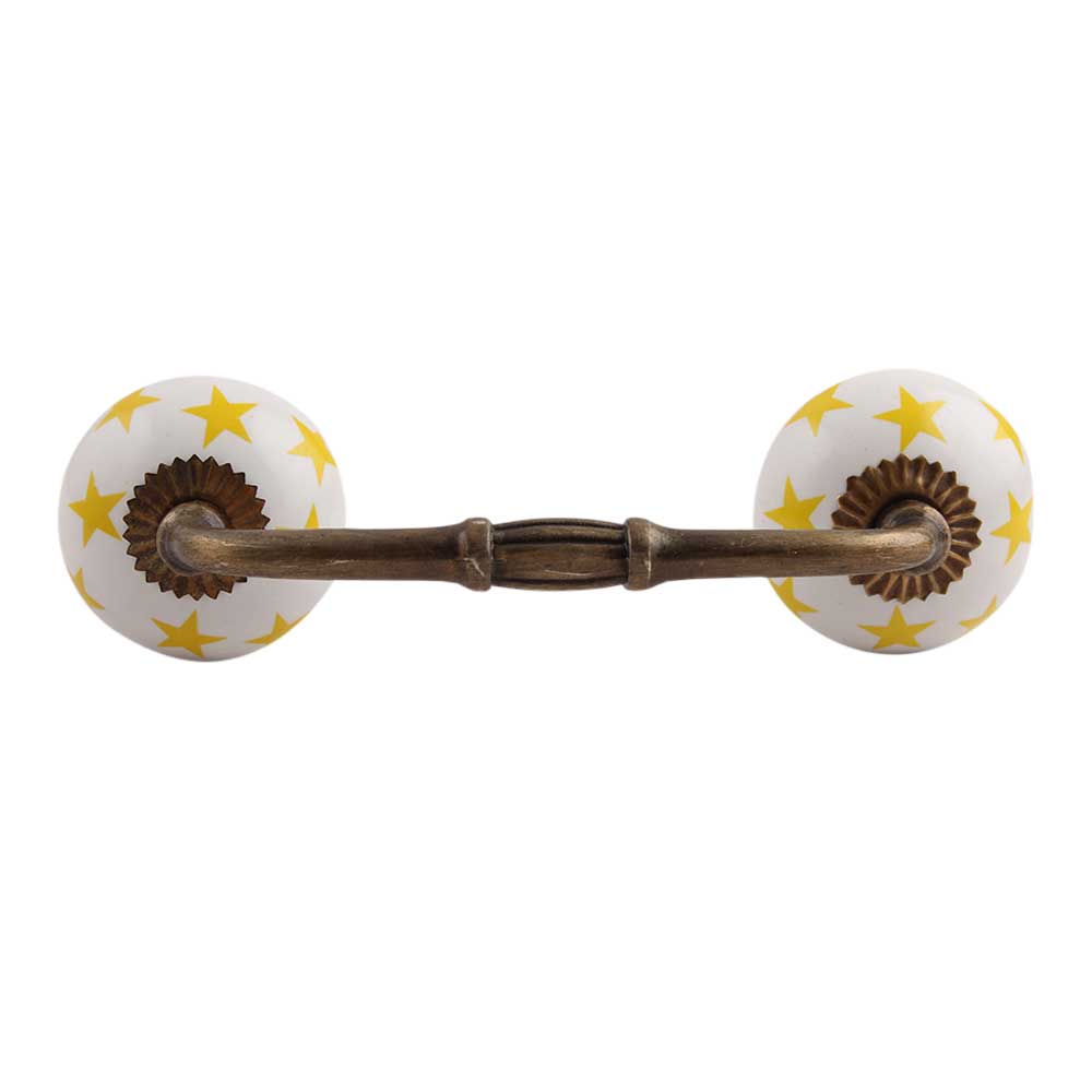 Yellow Star Ceramic Bridge Handle. Ideal for Drawer, Dresser, Cabinet, Wardrobe, Cupboard and Almirah.