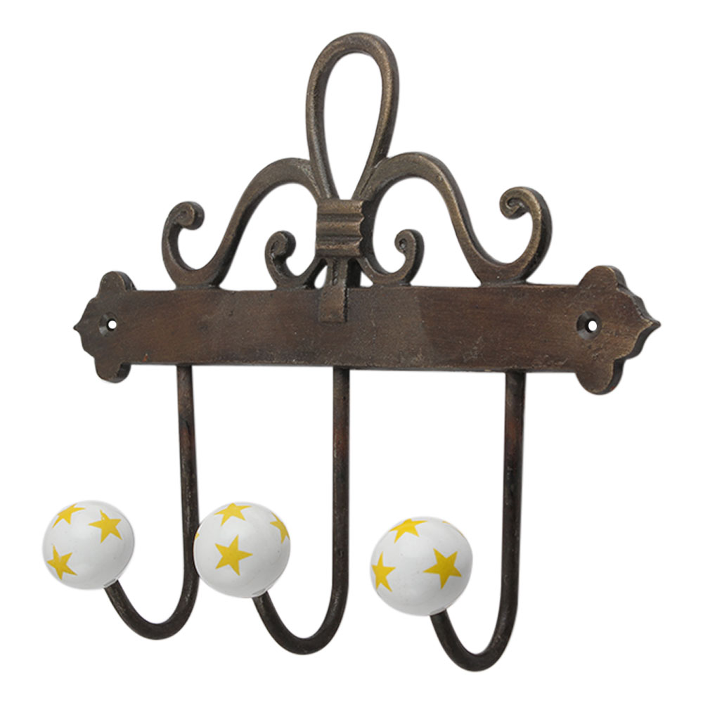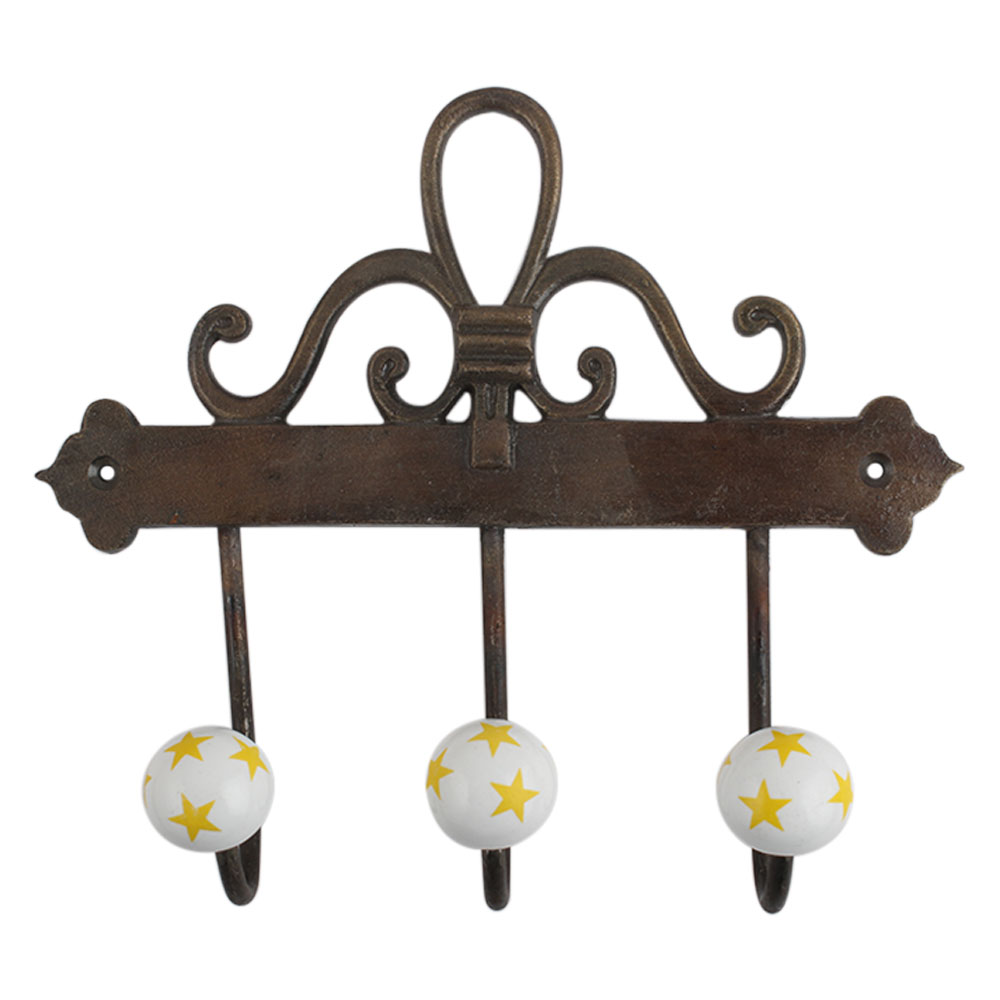 Yellow Star Ceramic Iron Hook. A Perfect Complement to the Soft Tone of the Wood are these White Traditional Hat Coat Hook Made of Genuine Porcelain and Brass. It can be use to Hang Jewellery, Leashes, Towels, Scarves, Light Weight Sweaters, Caps Etc.