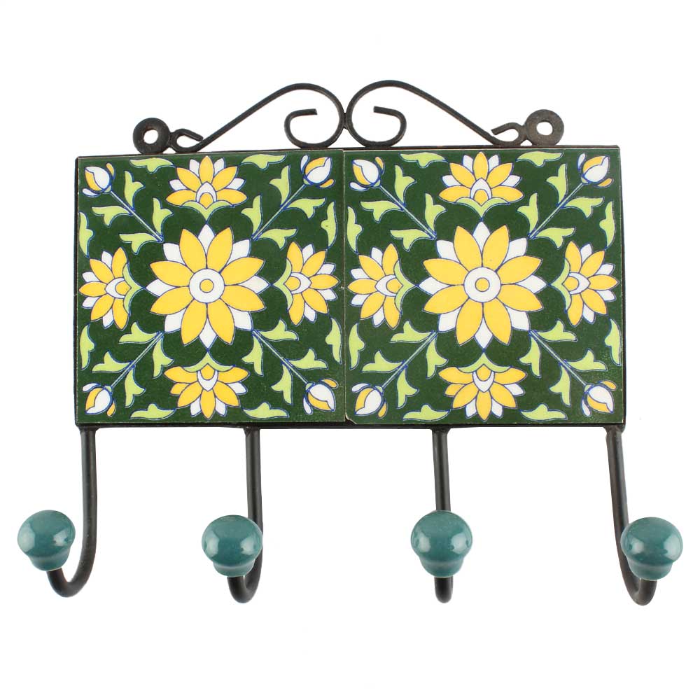 Yellow Sun Flower Ceramic Tiles Hook. When Put on Wall or Cabinet It is An Art in Itself. The Metal Part of this Hook is Black Powder Coated.