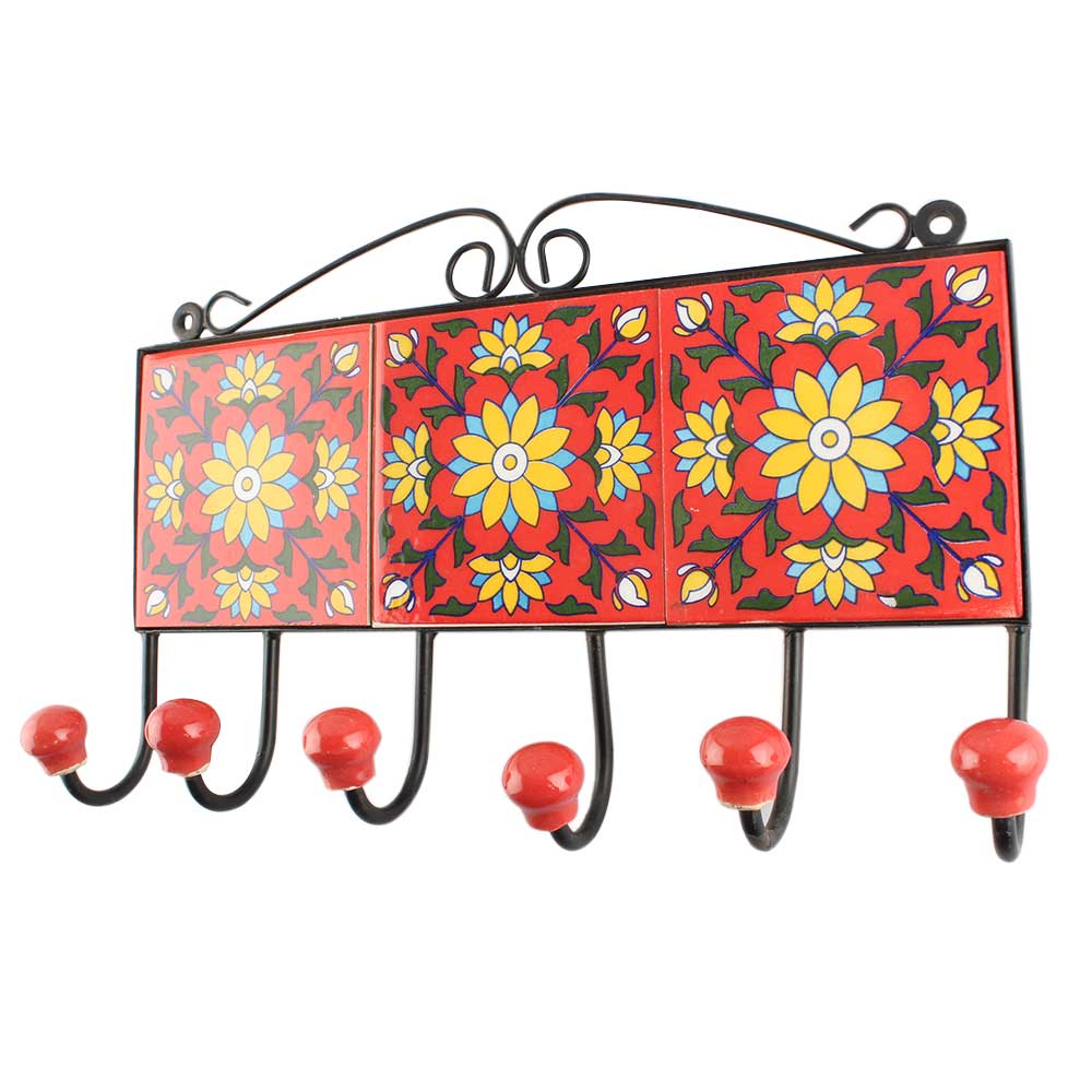 Yellow Sunflower Ceramic Tile Hook. When Put on Wall or Cabinet It is An Art in Itself. The Metal Part of this Hook is Black Powder Coated.