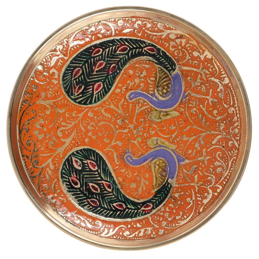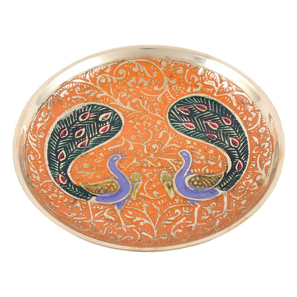 Brass Tea-Coffee drinks with a twin Peacock design coaster in a multicolor blend of green, red, and blue. Size standard Coaster with a lovely colour scheme. Useful in the kitchen home, office, dining room, and living room to offer tea coffee water drinks and other beverages to guests family. The best remembrance gift item for every occasion.