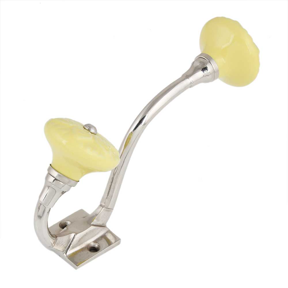 Material: Silver-Finished Iron Hook Finish: Glossy Yellow Glazed Ceramic, Smooth Silver Iron Installation: Wall-mounted with concealed screw (hardware included)